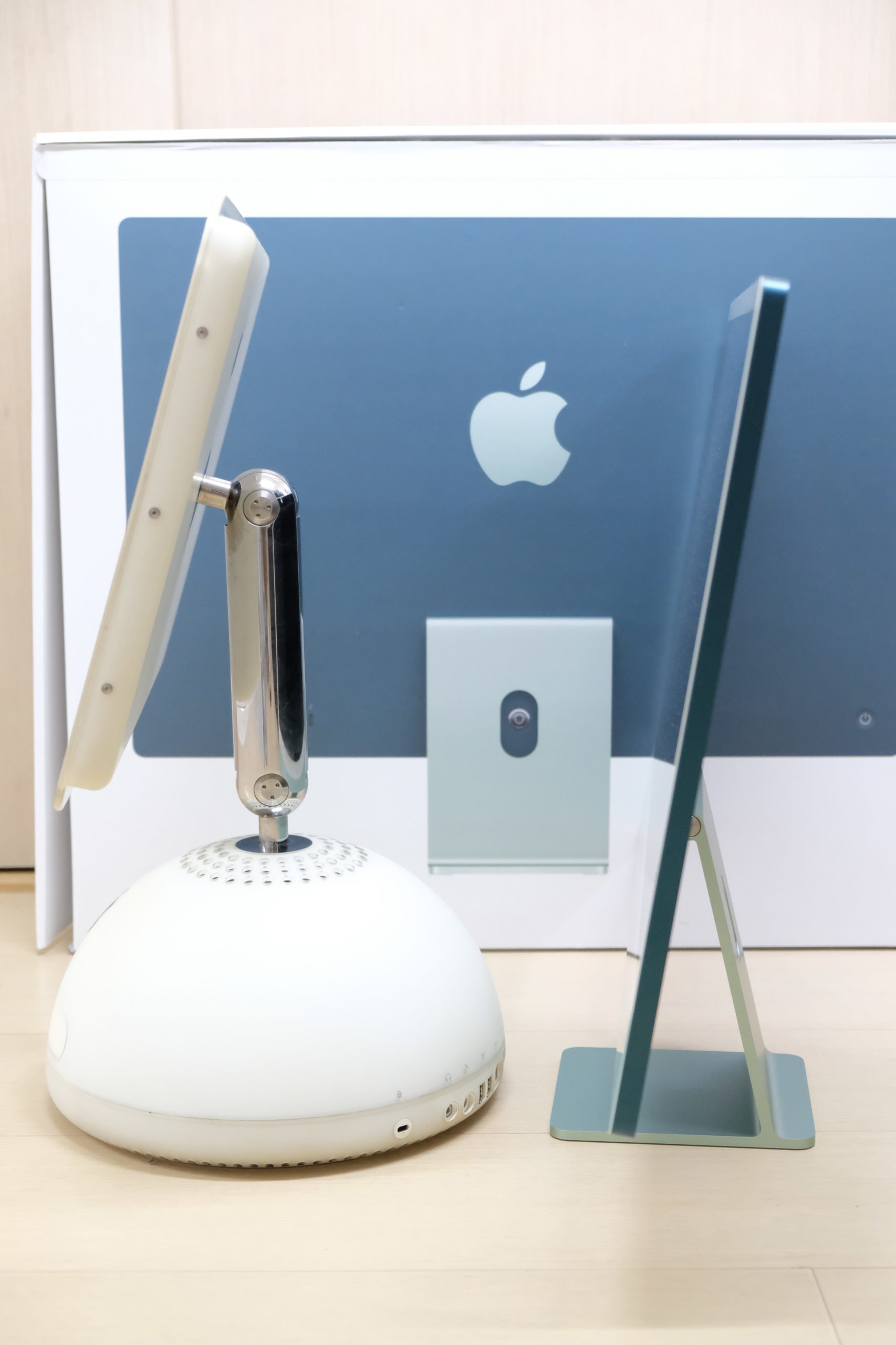 iMac 在維持了數年不變的銀色圓弧機身設計後,終於迎來的大改款。除了晶片從(不爭氣的) intel 改成自家設計的 ARM 架構 M1 晶片之外,搶眼的外型更是讓它在剛推出的時候,就引起蘋果同好圈的大量討論,機身背面我覺得非常漂亮,高飽和度的金屬彩色非常具有設計感,而白色邊框跟寬厚下巴則是這次設計最讓人起爭議的元素,寬厚下巴我沒意見,不過白色邊框我就得拿出信仰來為蘋果辯護,來來來,我這就請出半年前我從垃圾堆撿回來修復的 2002 年 iMac G4,看看這個前衛的檯燈造型,沒有人會說這台電腦不好看吧。要說”經典的 iMac 設計”,我並不會把這個名號頒給上一代的銀色 unibody iMac,檯燈造型 iMac G4 才是我心目中最頂尖的 iMac 造型,它是地球上第一個擁有 flat panel 平面螢幕的一體機,當時可是嚇壞了不少人。