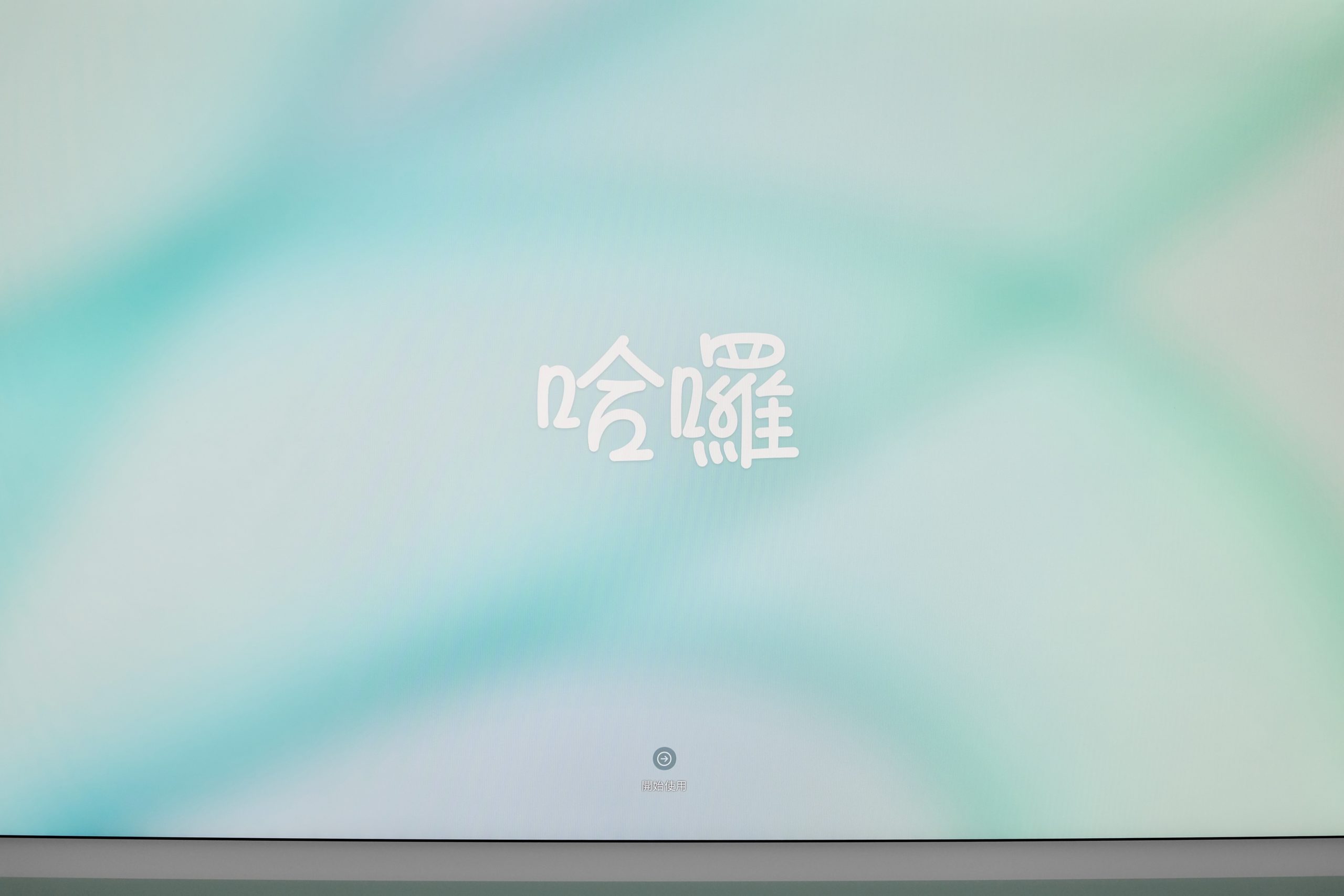 ▼ 第一層蓋子打開後,馬上映入眼簾的是 M1 iMac 24吋的大螢幕,以及上面保護貼的印刷字樣“hello”