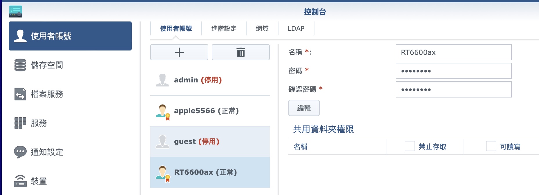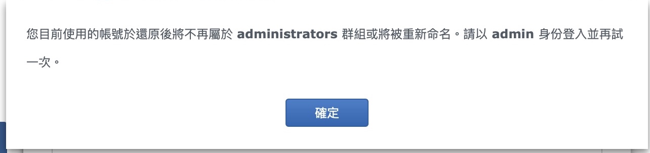 ▼ 於是我去新建了一個 apple5566 並設為管理員,就可以順利備份回復了。