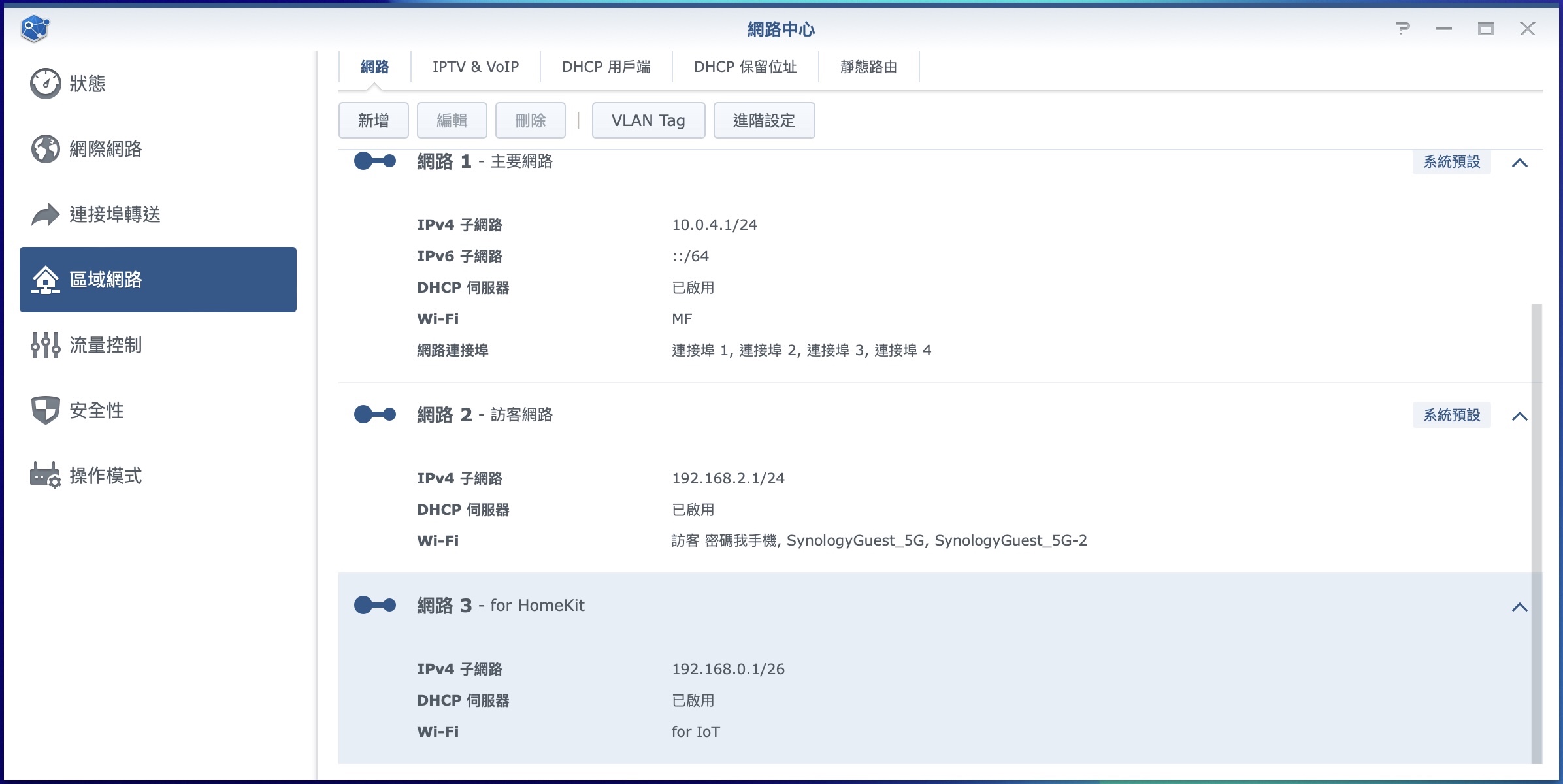 ▼ 現在我家就多了一個 for IoT 的網路,之後我家的智慧家電就會都加入這個了,跟我的 NAS、電腦,等設備隔離開來。
