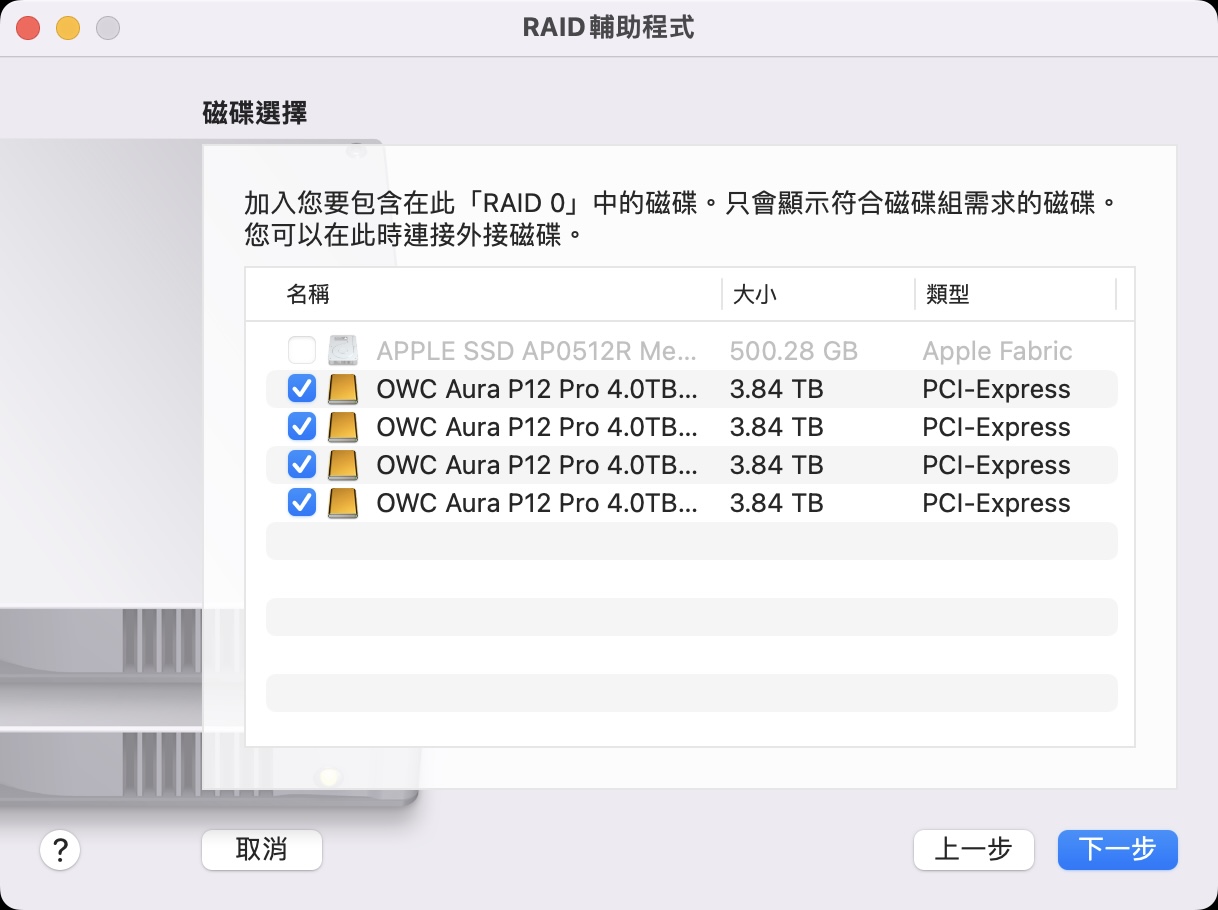 這裡我們就把它做成 RAID 0,追求最大速度。
