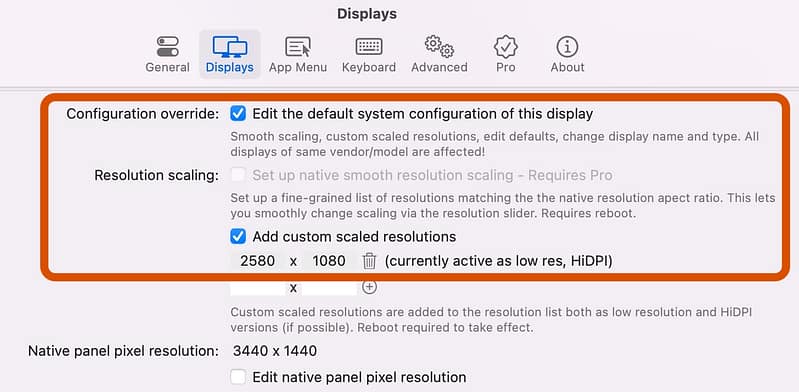M1/M2 的電腦非常強大,但他對於外接螢幕的支援度有一個致命的缺點,也就是他對於 2K 解析度的螢幕,無法支援 HiDPI。簡單來說,就是改變解析度的時候保持顯示的清晰銳利度。這個問題影響到不只是 M1/M2 也包含了 Pro 或是 Ultra,而且很有可能之後的 Apple Silicon 電腦都會有一樣的情況。