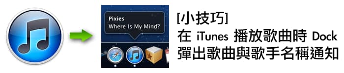 [小技巧] 在 iTunes 播放歌曲時,Dock 彈出歌曲與歌手名稱通知