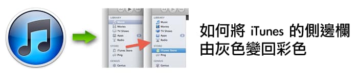 [教學] 如何將 iTunes 的側邊欄由灰色變回彩色