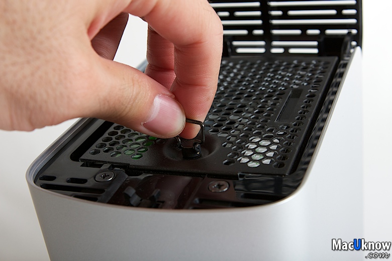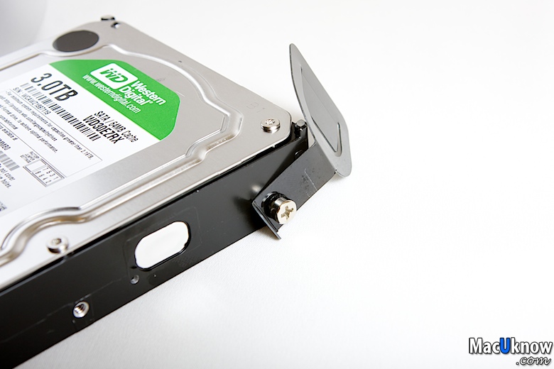 旁邊的拉把是由一個螺絲卡住,在自行換上硬碟的時候,別忘了也將螺絲和拉把一同換到新硬碟上~