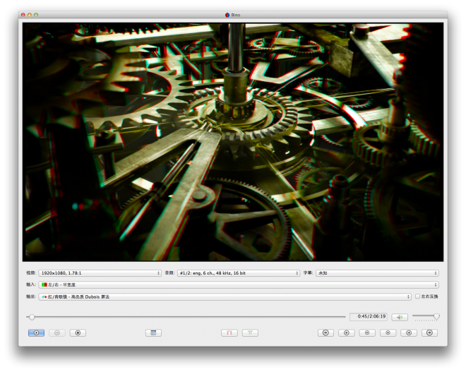 其實在 OSX 下,是有個不錯的軟體– Bino 3D ( 免費下載 ),而且還可顯示中文( 簡體 )操作介面。