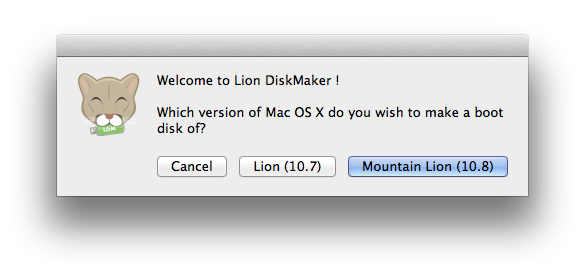 接著就是開啟Lion DiskMaker,選擇製作版本,當然是Mountain Lion (10.8)。