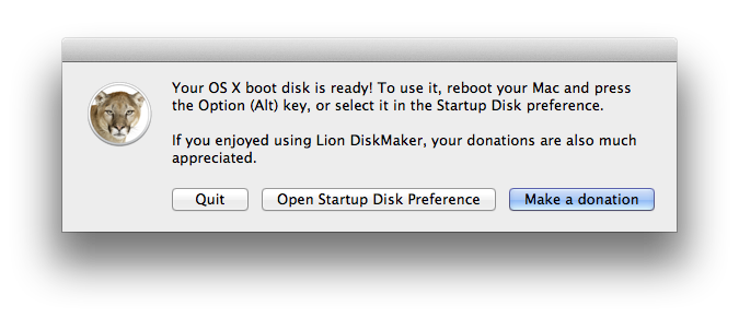 中間過程就是等它自行完成,完成後,會跳出以下視窗。你可以按下”Make a donation”捐錢贊助一下軟體作者,或是按下”Quit”退出程式即可。