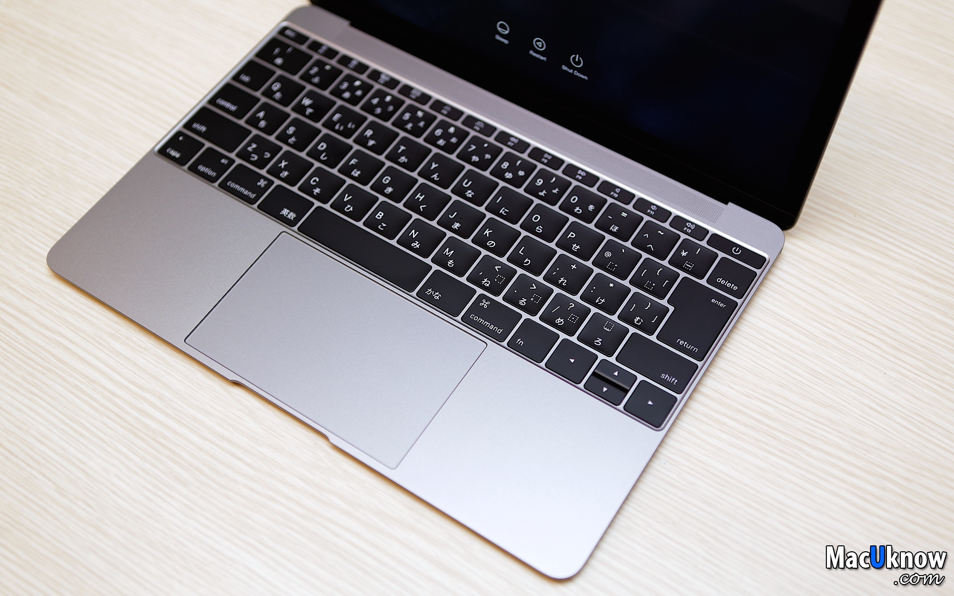 ▼朋友去日本買的太空灰MacBook,搭載日文鍵盤,相當特別的配置。