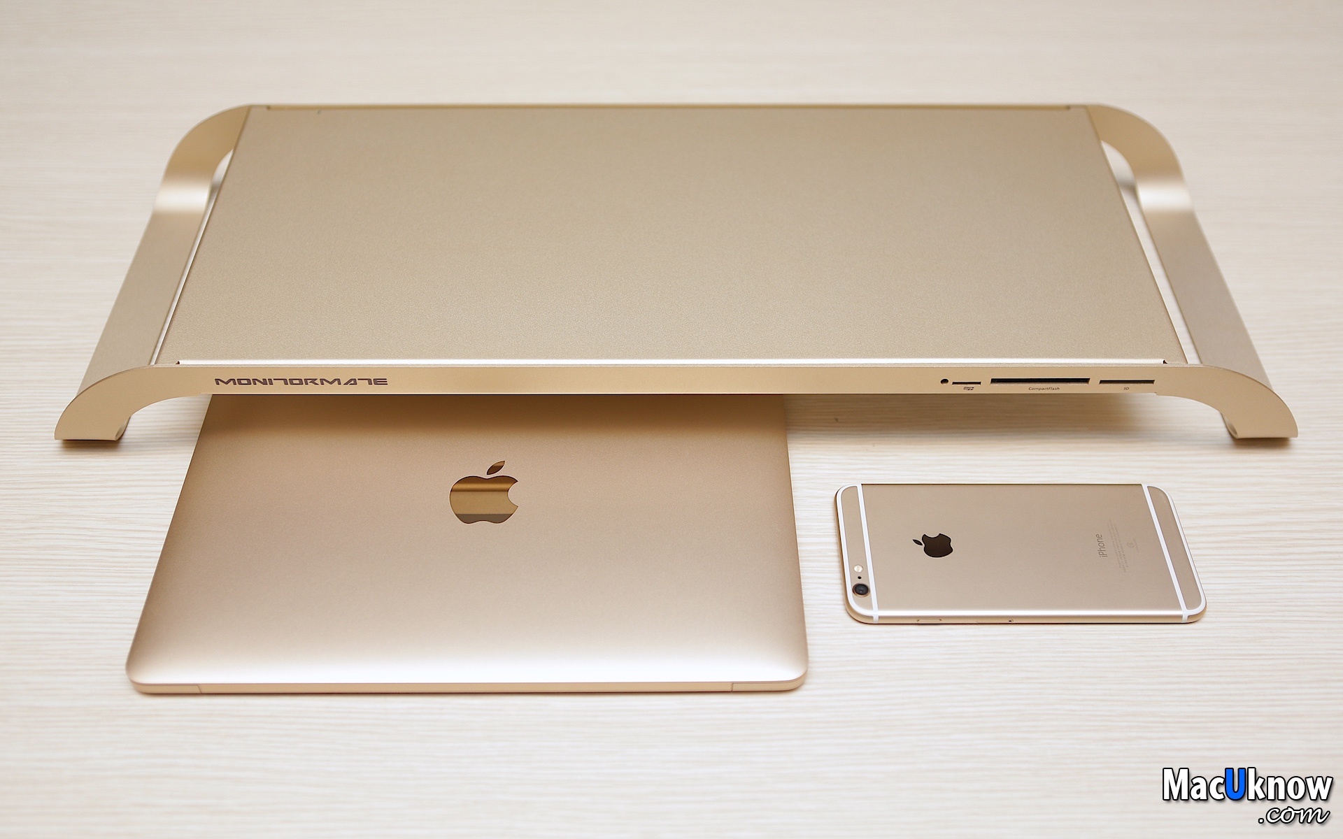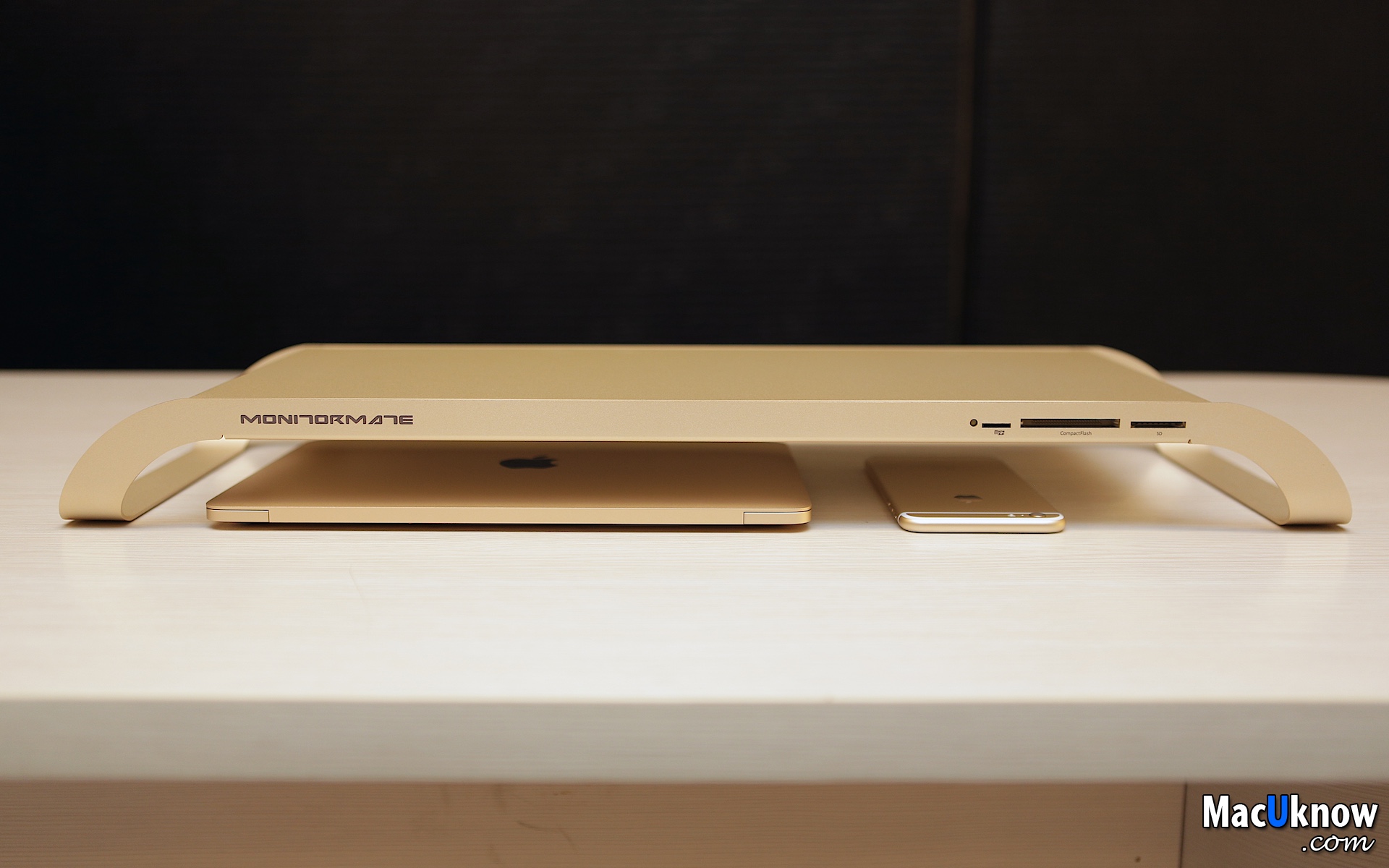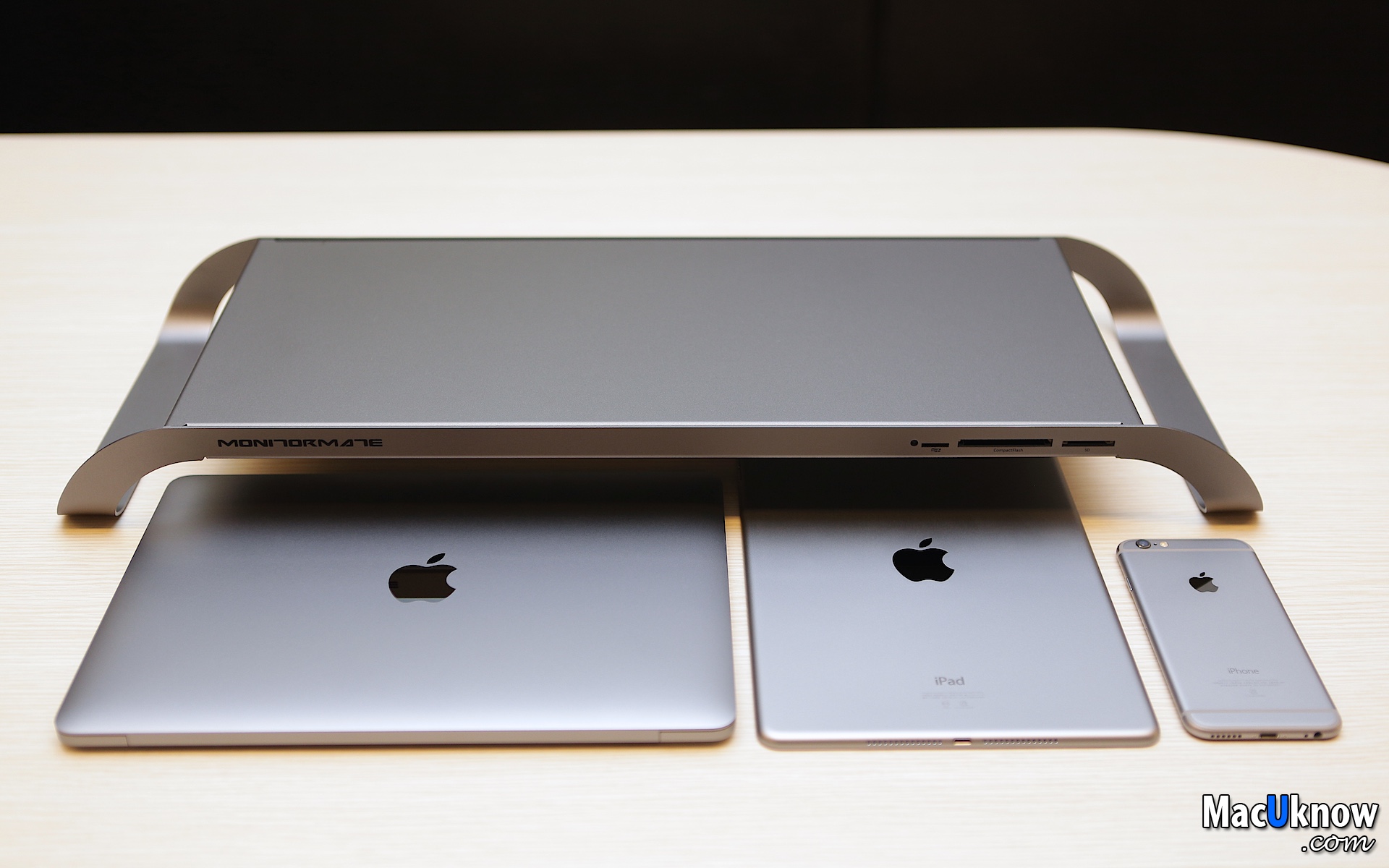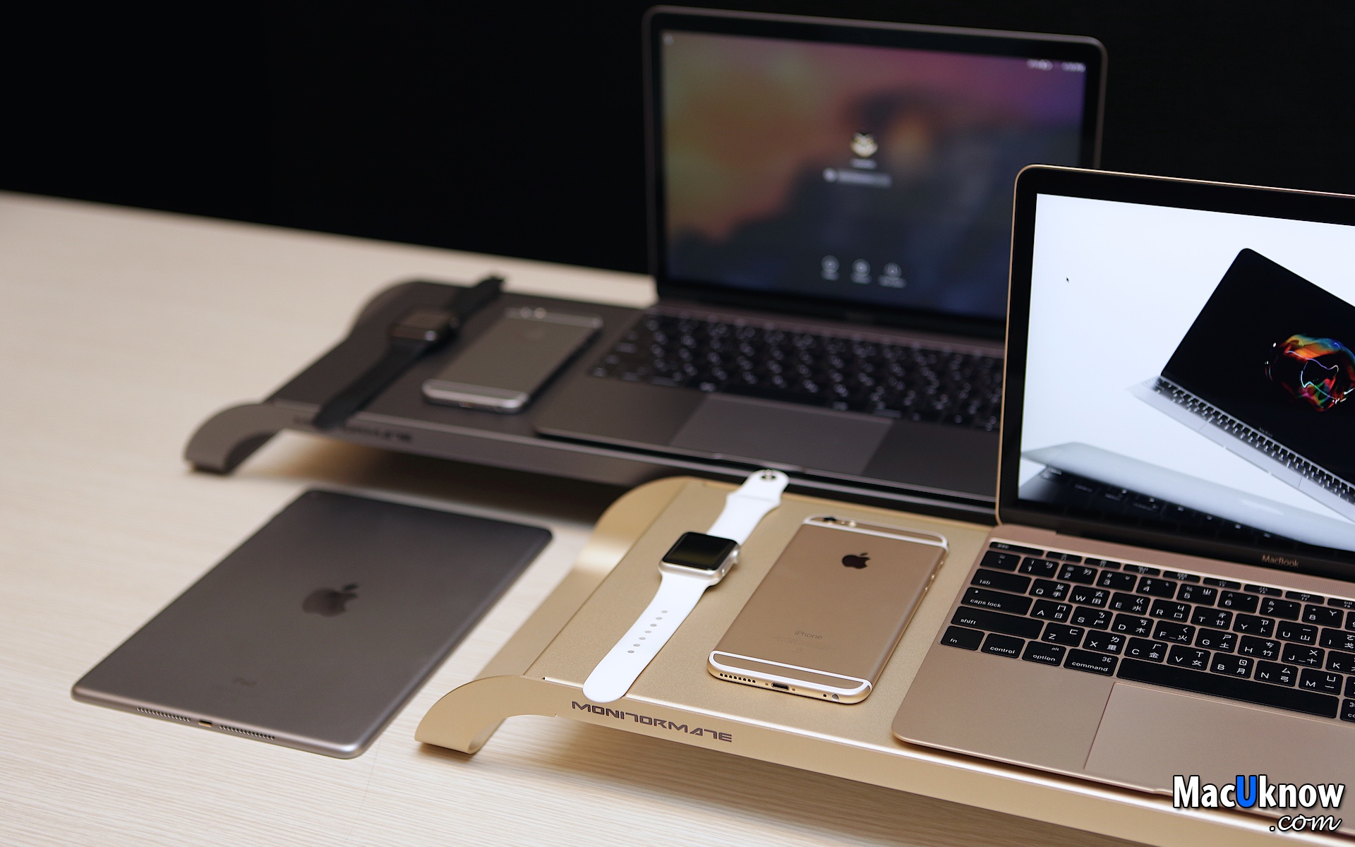 感謝廠商讓MacUknow這邊搶先開箱,Stanley就先來動手玩玩看了,但在拍完照片之後發現,吼,除了MonitorMate ProStation太空灰和金色,跟蘋果目前一系列的產品超級搭、完全無違和感之外,真的會中毒,會默默地想要把一個色系的蘋果產品、周邊都收集起來耶,真的是美的東西,讓人完全沒有抵抗力啊。