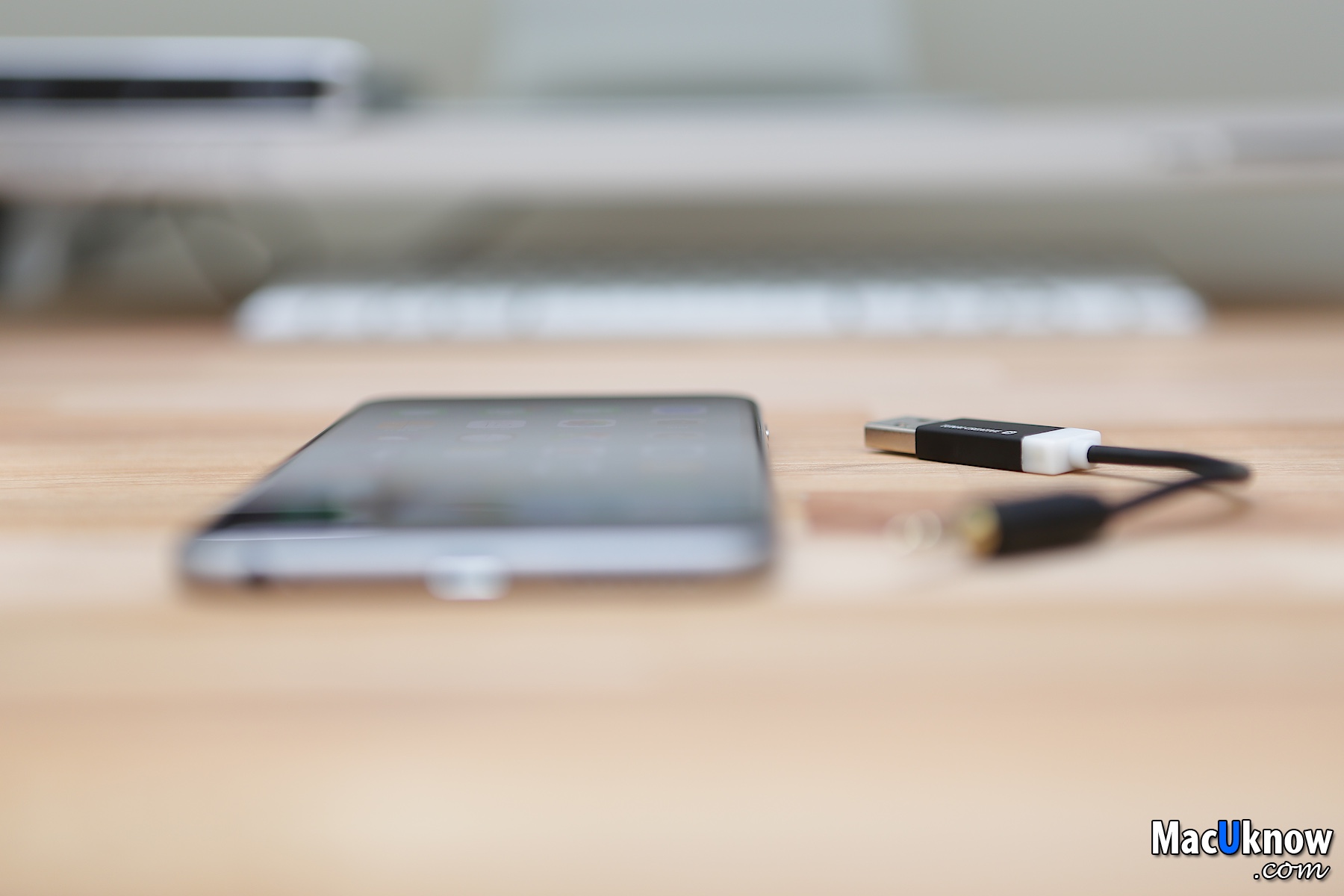 ▼擺在5.5吋的iPhone 6 Plus旁邊,真的就像一條10cm分的短線材一樣。