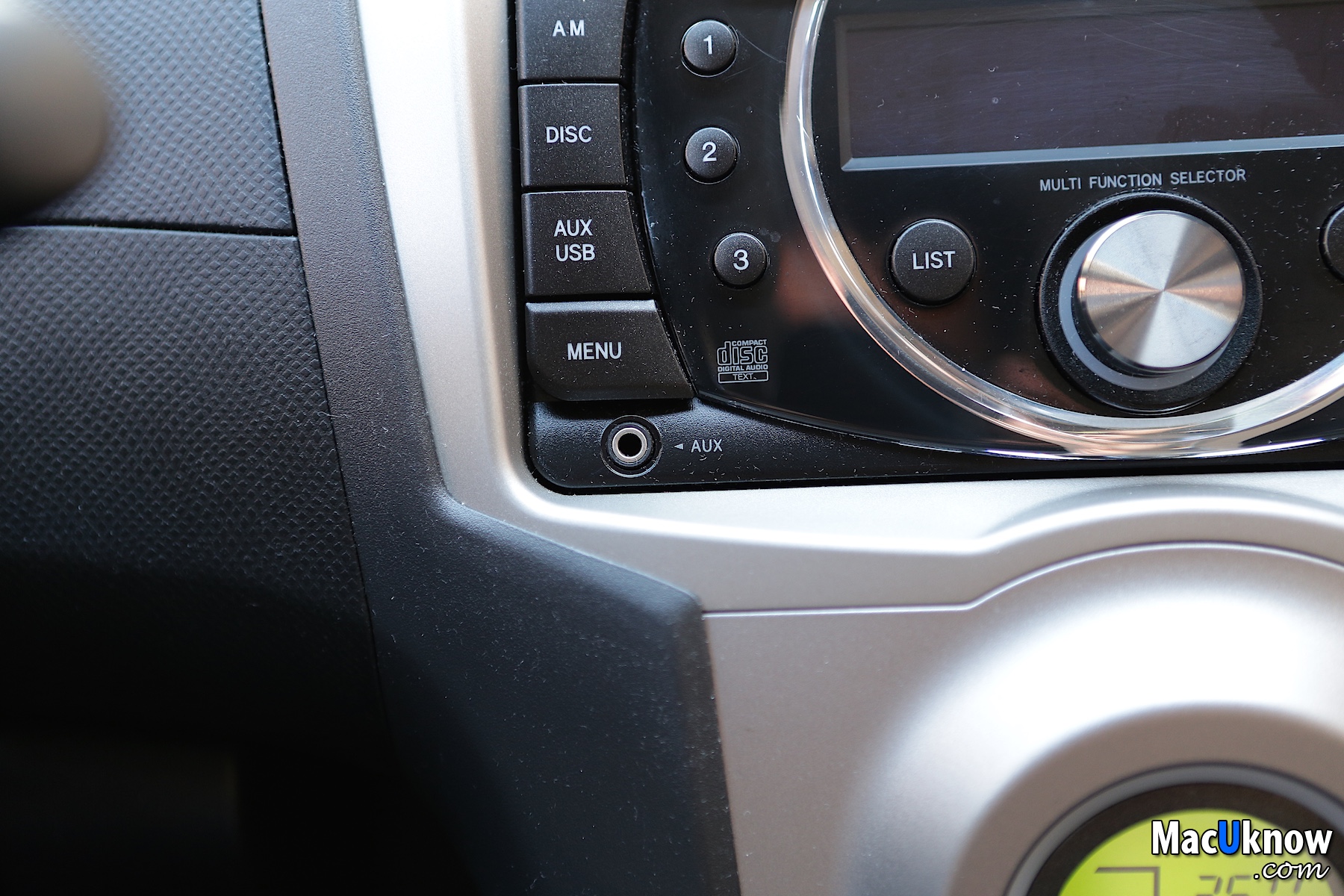 ▼另一頭3.5mm音源頭,插入車用音響的AUX IN輸入孔,如果Firefily這個時候不夠長,就需要接上那條3.5mm音源延長線了。