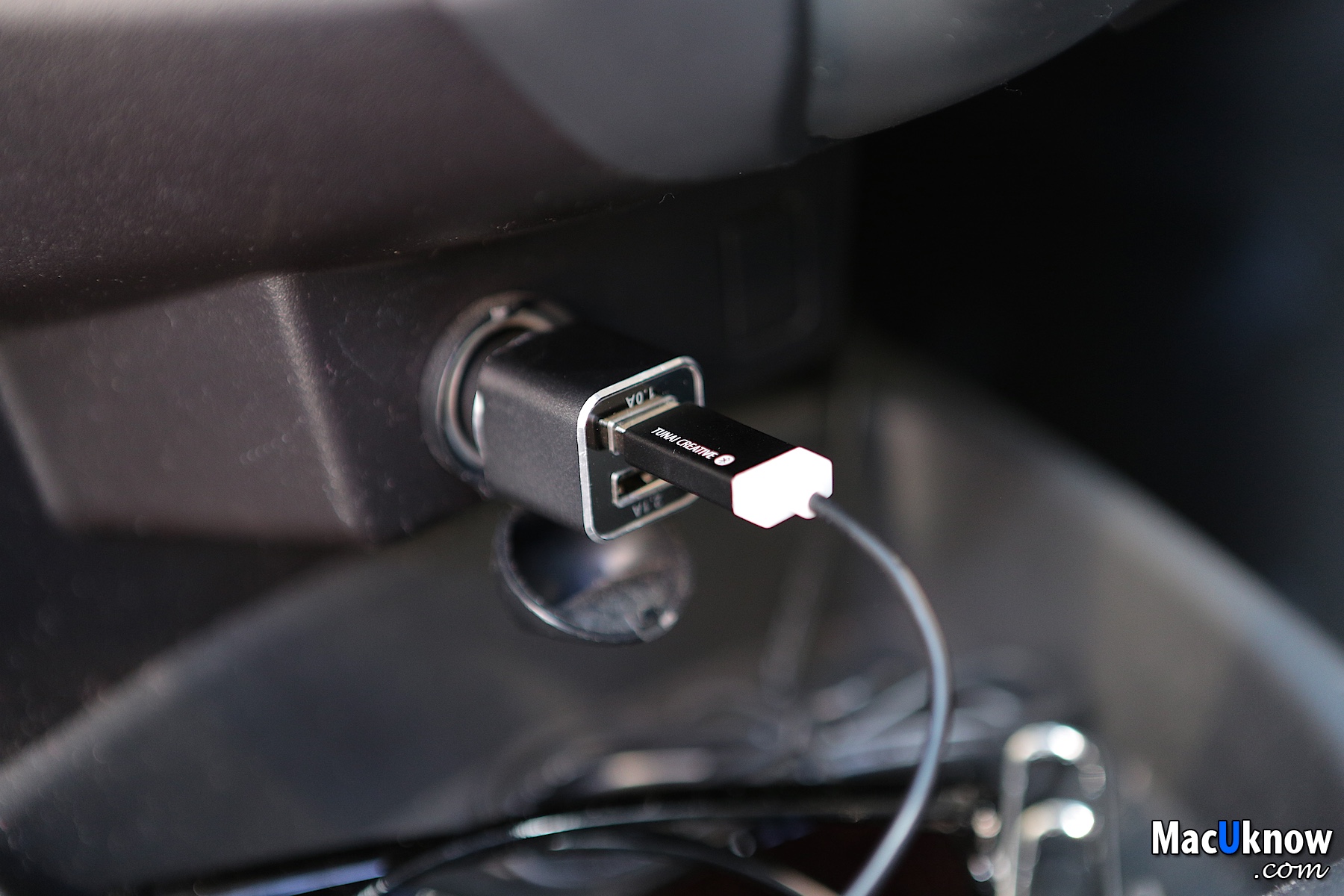 這個時候,只要透過車充的USB充電器,把TUNAI Firefly接上來這邊就可以有供電囉~
