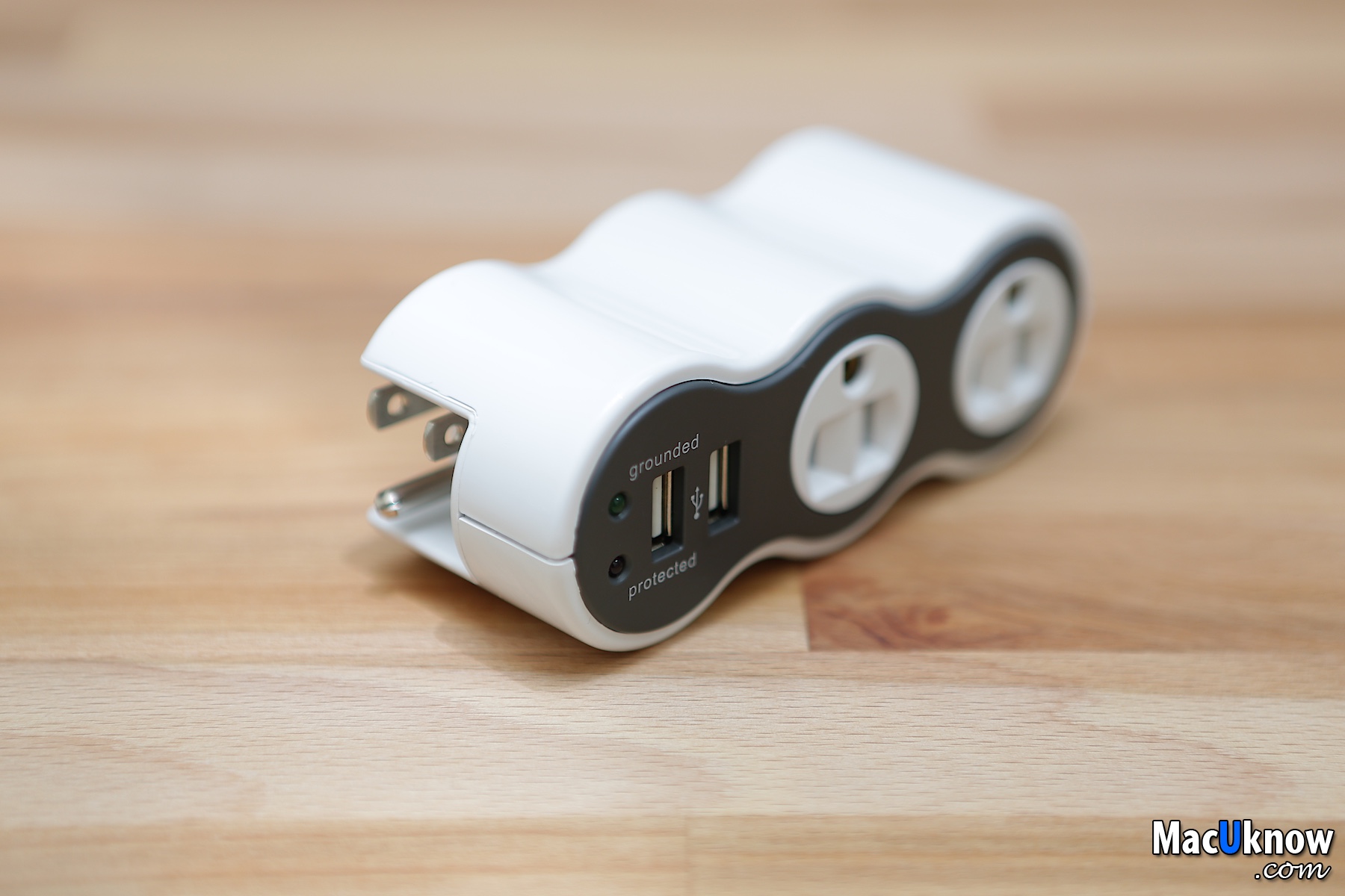 ▼算是比較小型的電源延長裝置,配上兩個USB充電孔,和兩個插座孔,一樣插座孔也是可以360旋轉的。