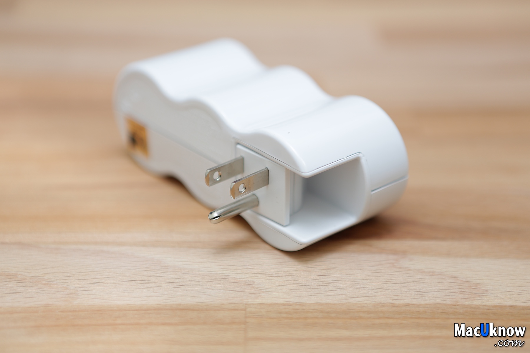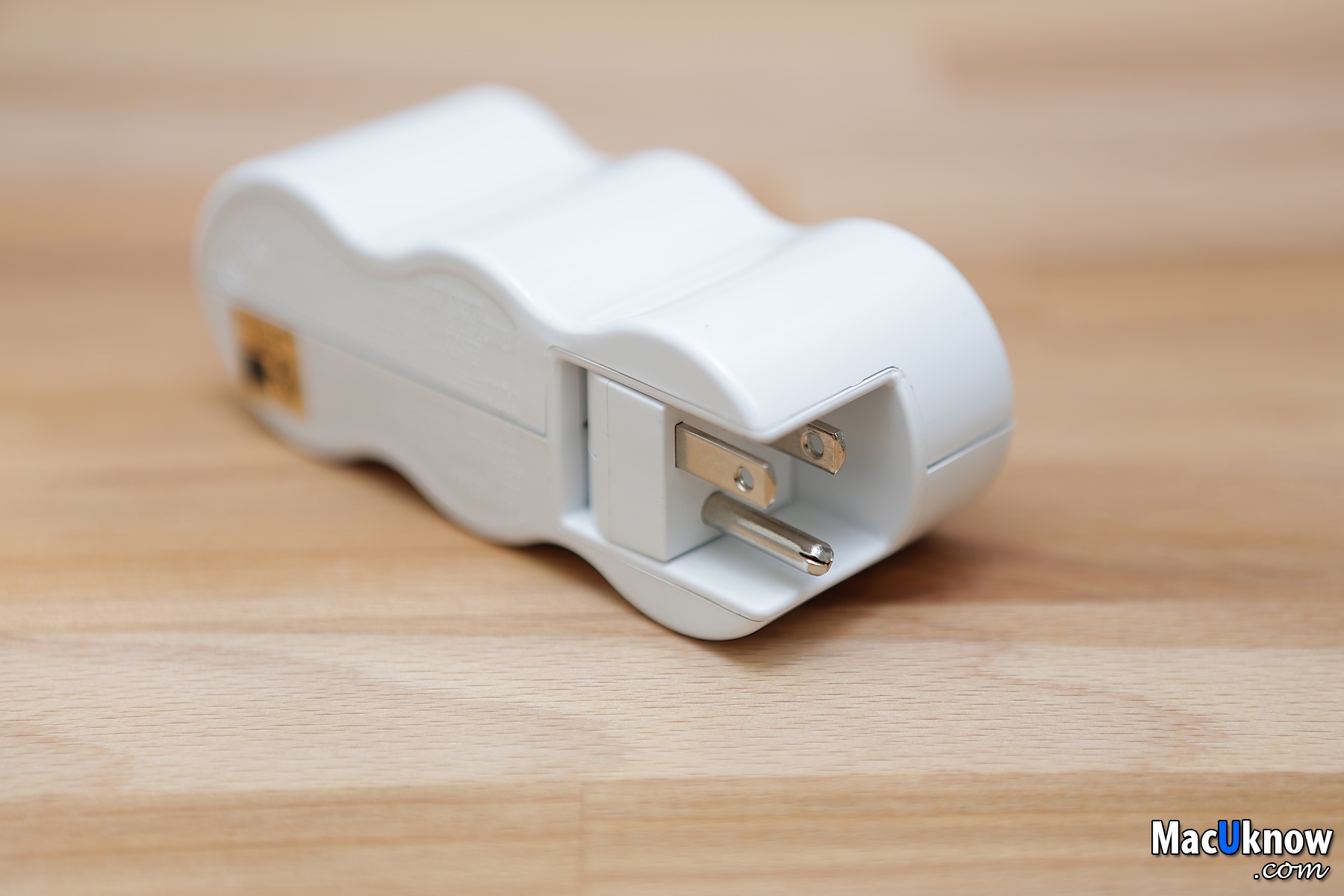 ▼看到背面,插座頭是可以收納折起的,原來『360旋轉壁插』是設計給旅行、攜帶方便使用的。