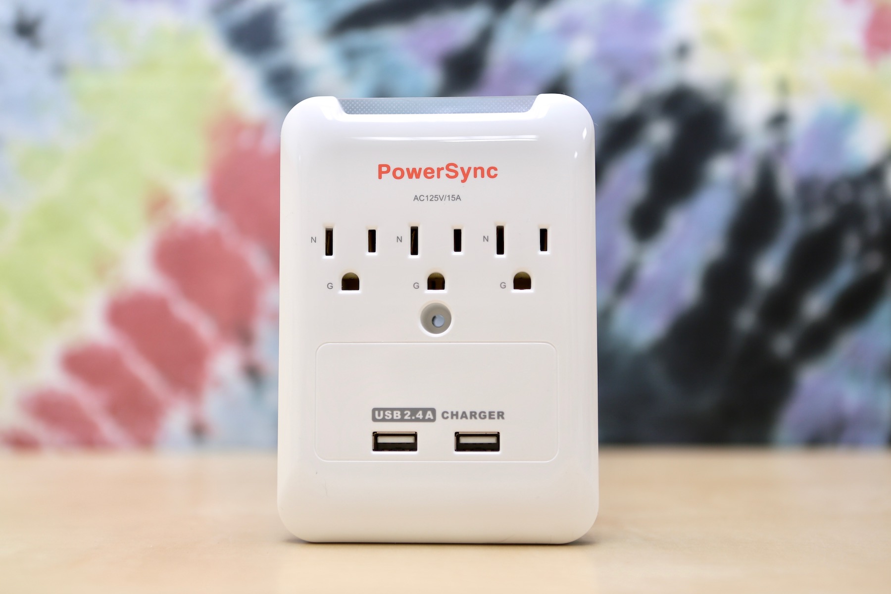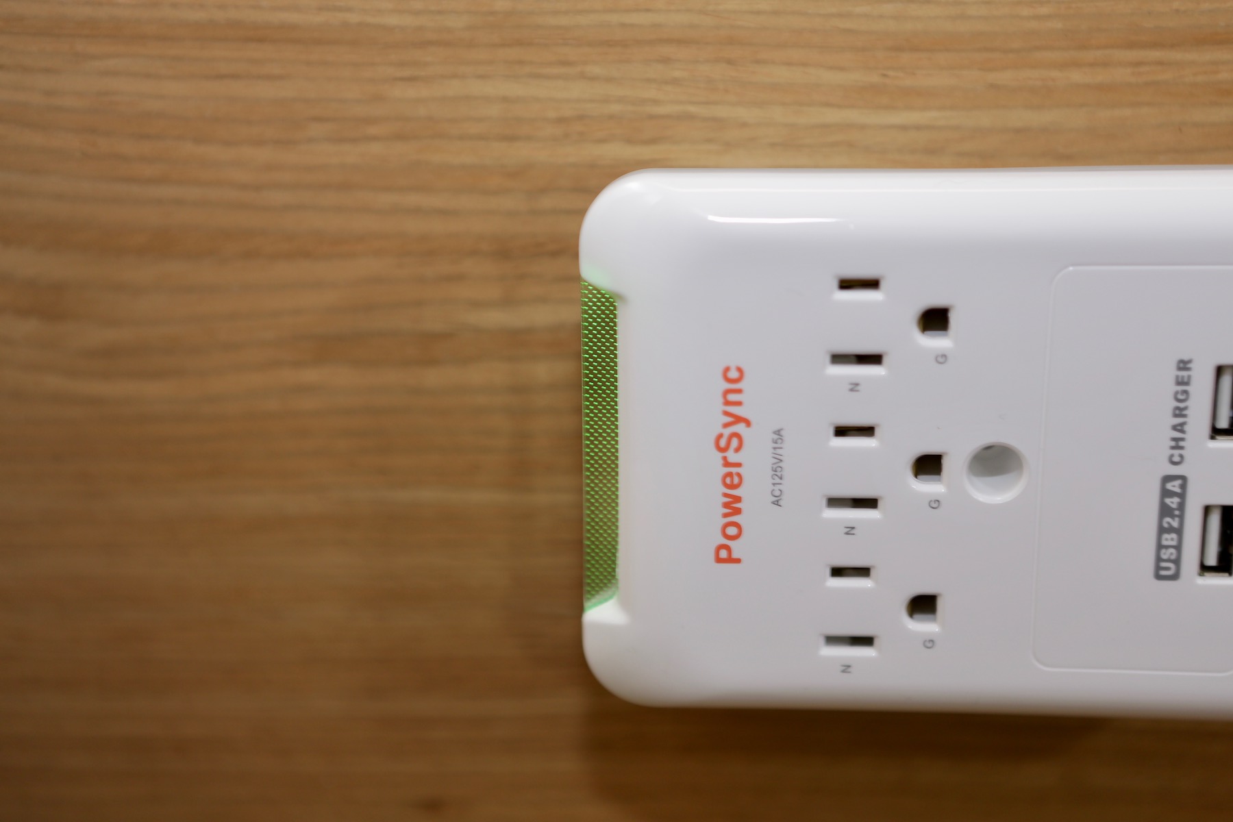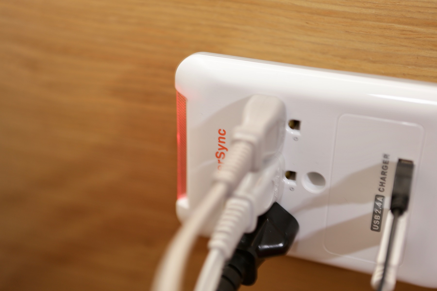 ▼ 這次借到了 PowerSync 出的壁插,他們家已經出過很多附有 USB 插座的延長線,大家評價也不錯,不過我床頭已經有一堆東西,再用延長線的話實在是太多線了。好險他們有出壁插,馬上開箱試用看看。
