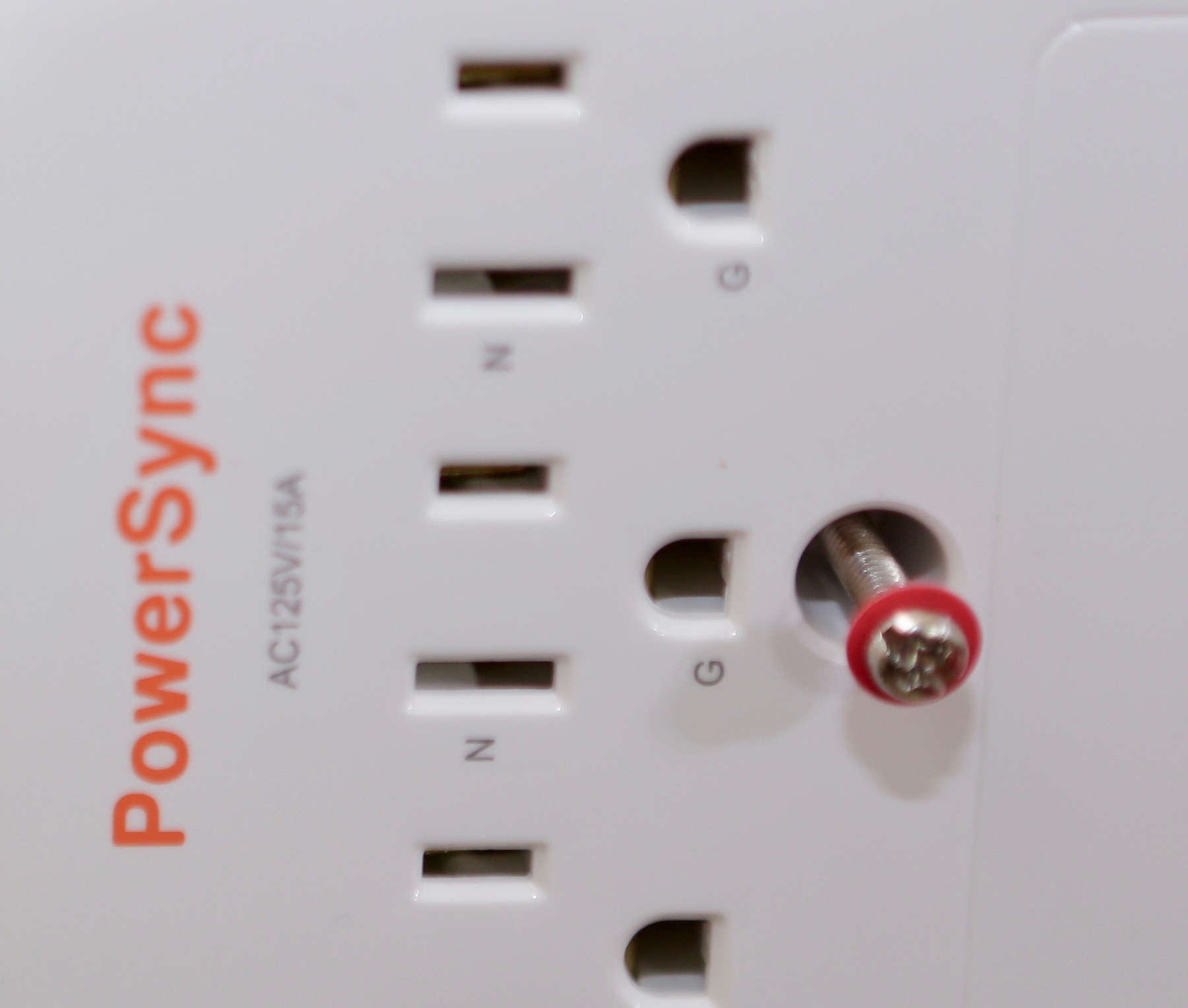 ▼ 三孔的下方有一個洞是用來強化固定用的,可以用隨附的螺絲來打入,不過插座上就變得要鑽孔。不過這樣一來,把插頭從壁插上拔掉的時候,不用擔心連壁插都會一起被拔掉。