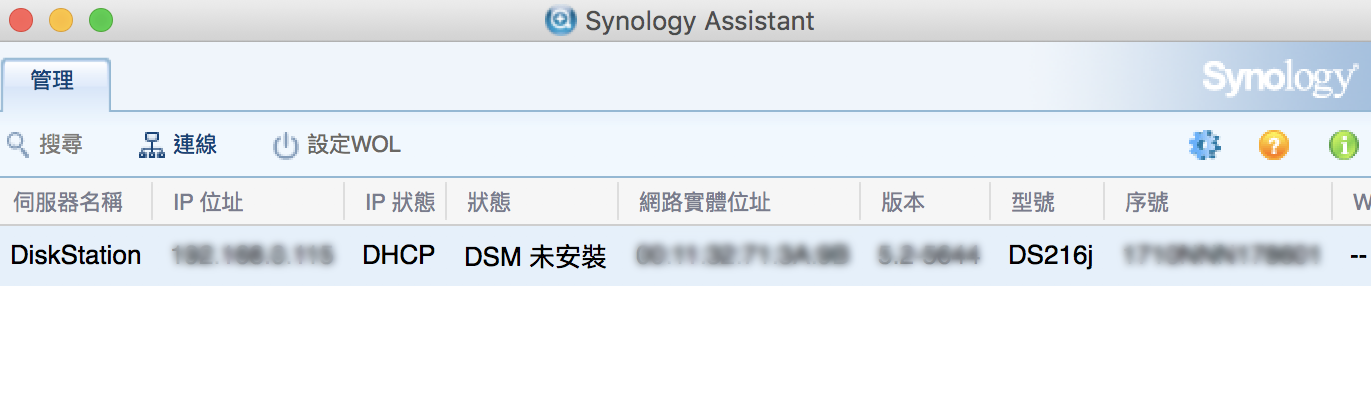 ▼ 下載完之後就直接執行吧。只要有正確的把線插好,就可以看到他已經搜尋到 NAS 了,就點兩下來開始安裝他的作業系統吧。