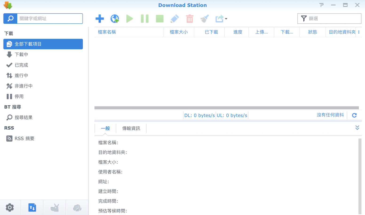 ▼ 執行之後他的介面長這樣,按下「+」就可以開始下載任務,你要餵牠吃下載網址,或是BT種子都可以。不過這時一定還有很多人想說,可不可以不要用 NAS 的硬碟下載,裡面的硬碟等級很貴,不想因小失大阿。