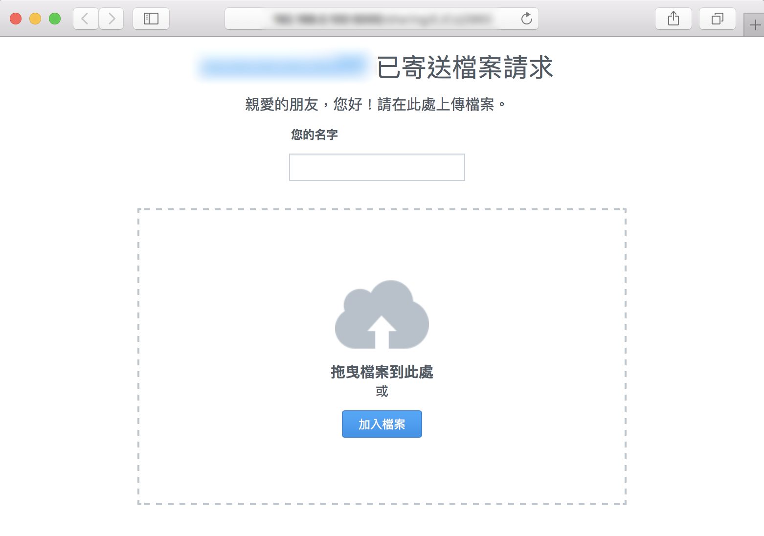 ▼ 對方收到連結之後,就可以直接透透網路瀏覽器把檔案上傳到你的 NAS 之中啦。