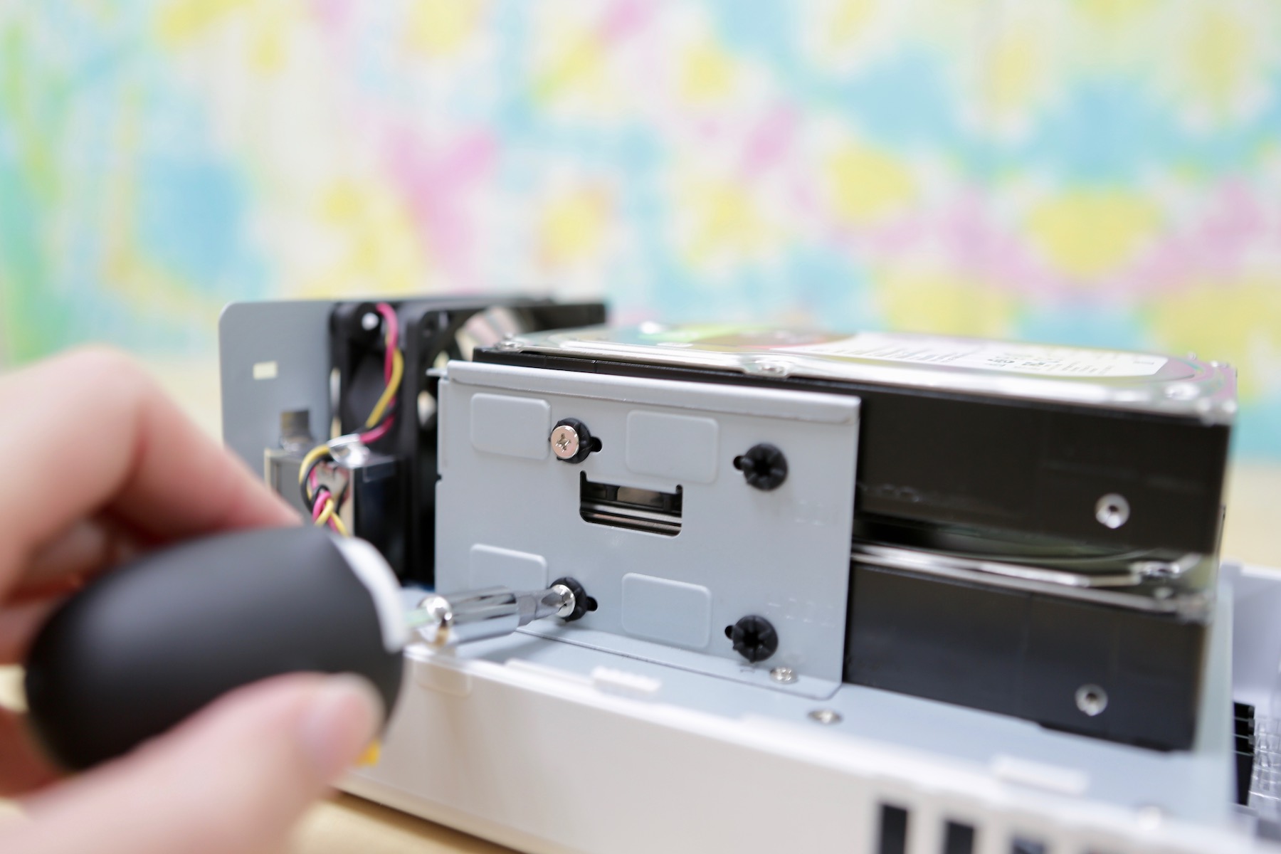 ▼ 記得把側邊的螺絲鎖緊,鎖緊的用意不只是讓硬碟不會鬆脫,而且是固定住他們,減少共震,延長硬碟的壽命。