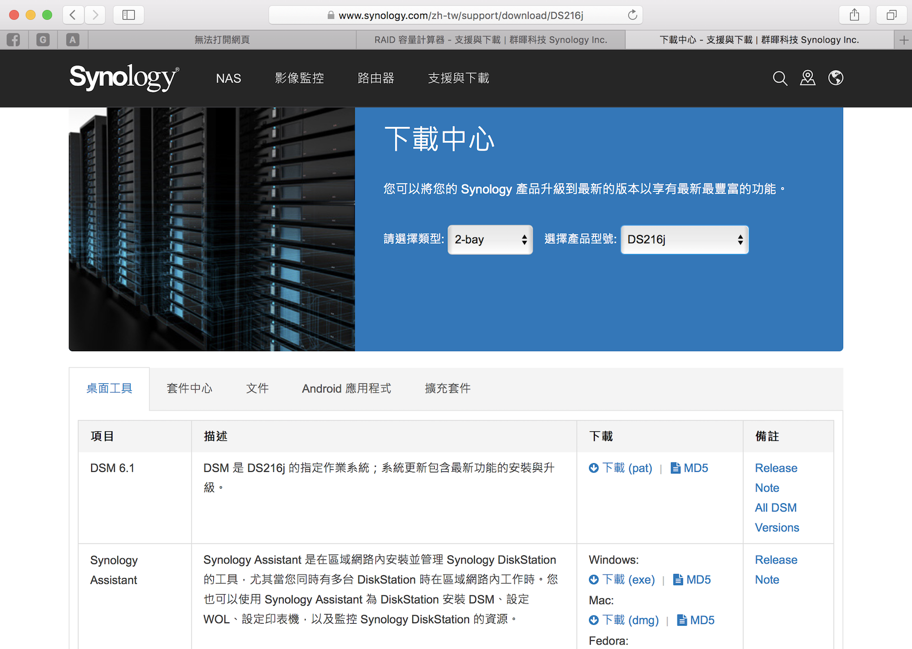 https://www.synology.com/zh-tw/support/download
