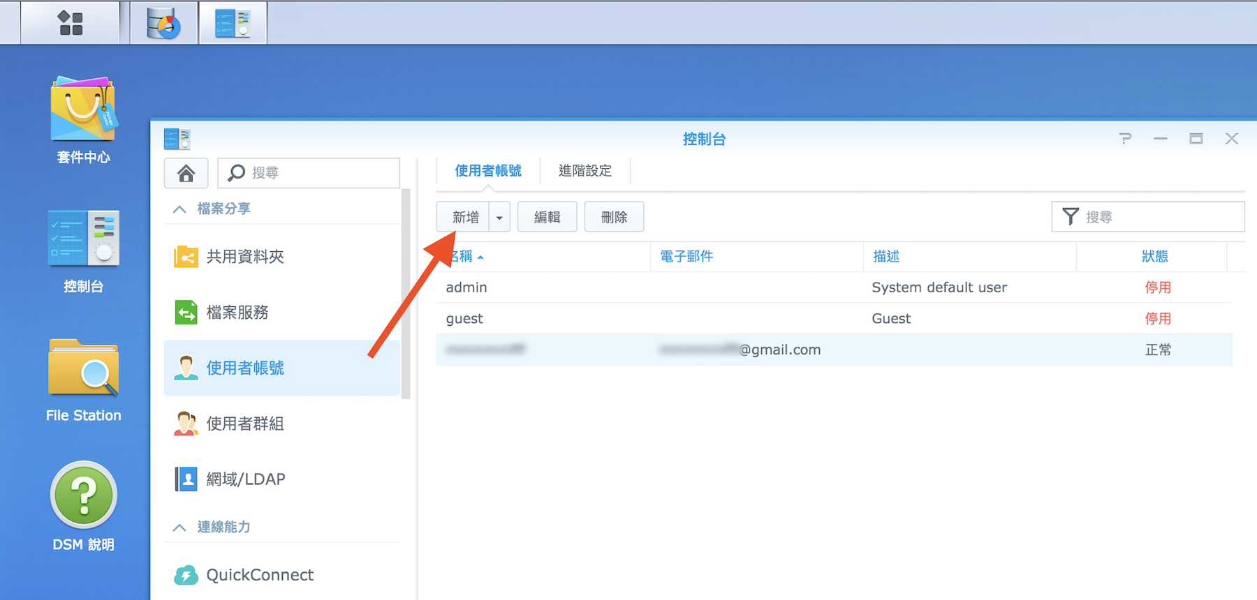 ▼ 首先,我們打開控制台,到使用者帳號那邊按下新增帳號。