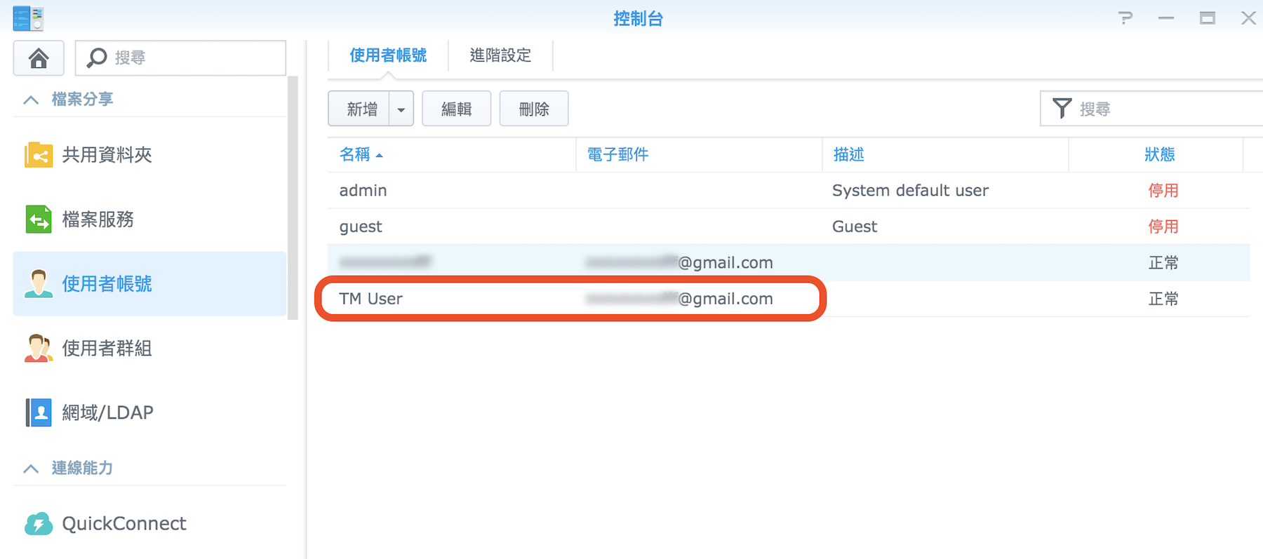 ▼ 現在已經新增好帳號了,第一步已經完成。