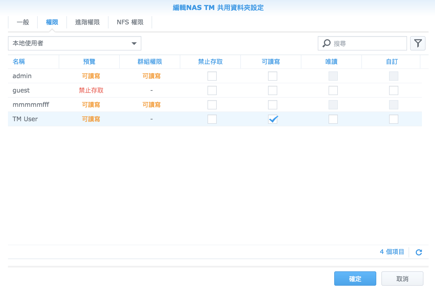 ▼ 接著就要決定這個資料夾的權限,就是要讓 TM User 來使用的。
