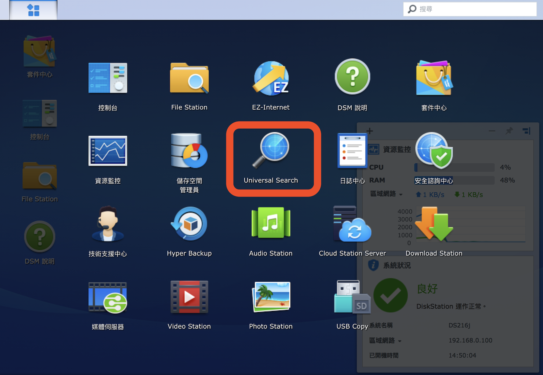 ▼ 這次 Synology DSM 6.1 的新功能之一:Universal Search,就是來彌補這個問題的強力助手。