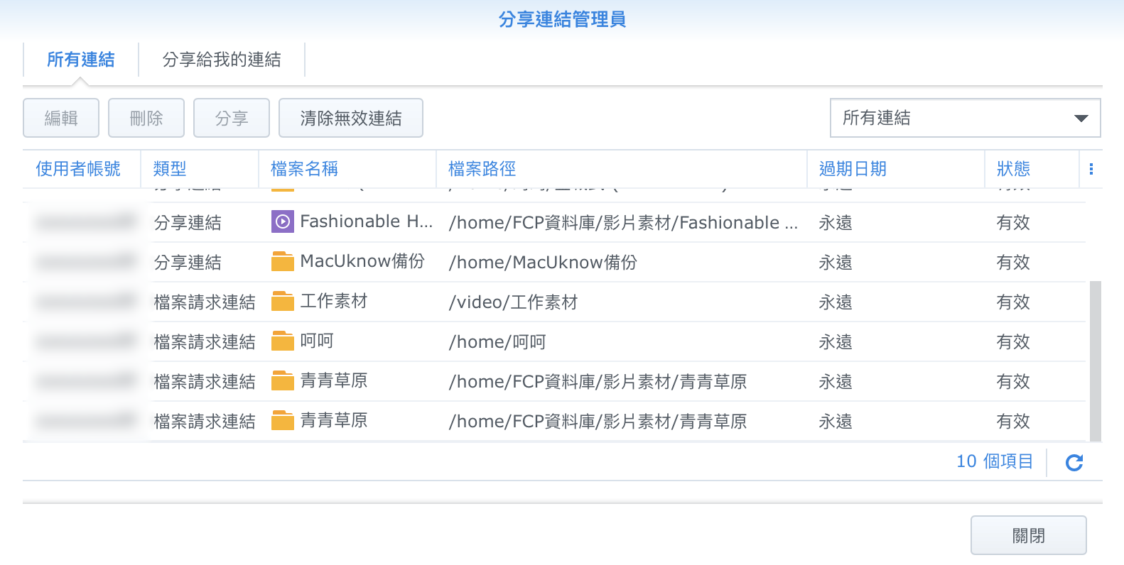 ▼ 在這裡就可以看到所有分享過的連結,可以視情況把一些過期或是不想繼續分享的連結都刪除。