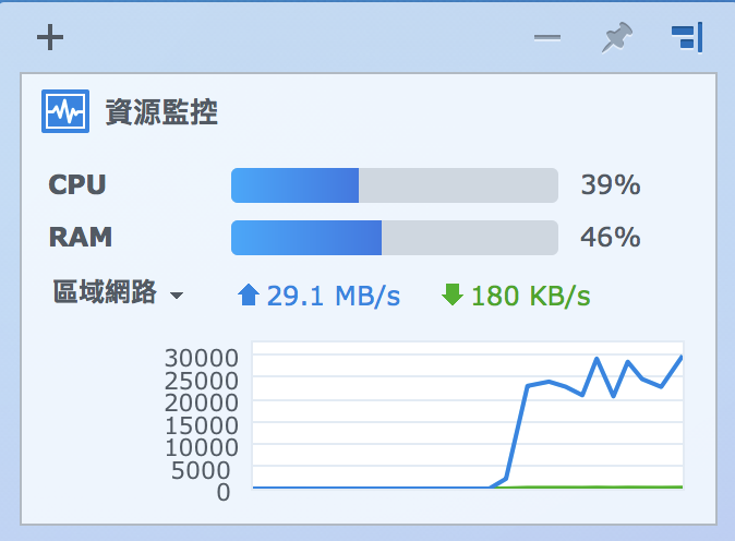 ▼ 雖然這次測試是用 802.11 AC 的無線分享器,不過我用的機器的 5G 訊號有點糟,常常只有 200、300Mbps,所以速度大概只有 30MB/s 左右。