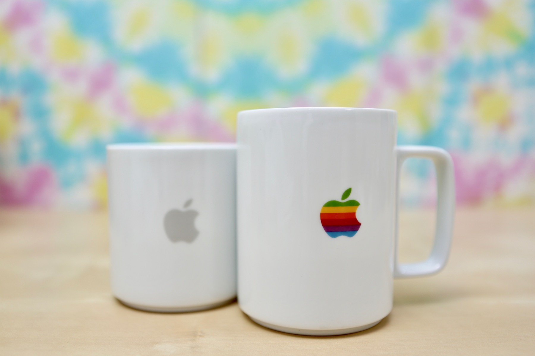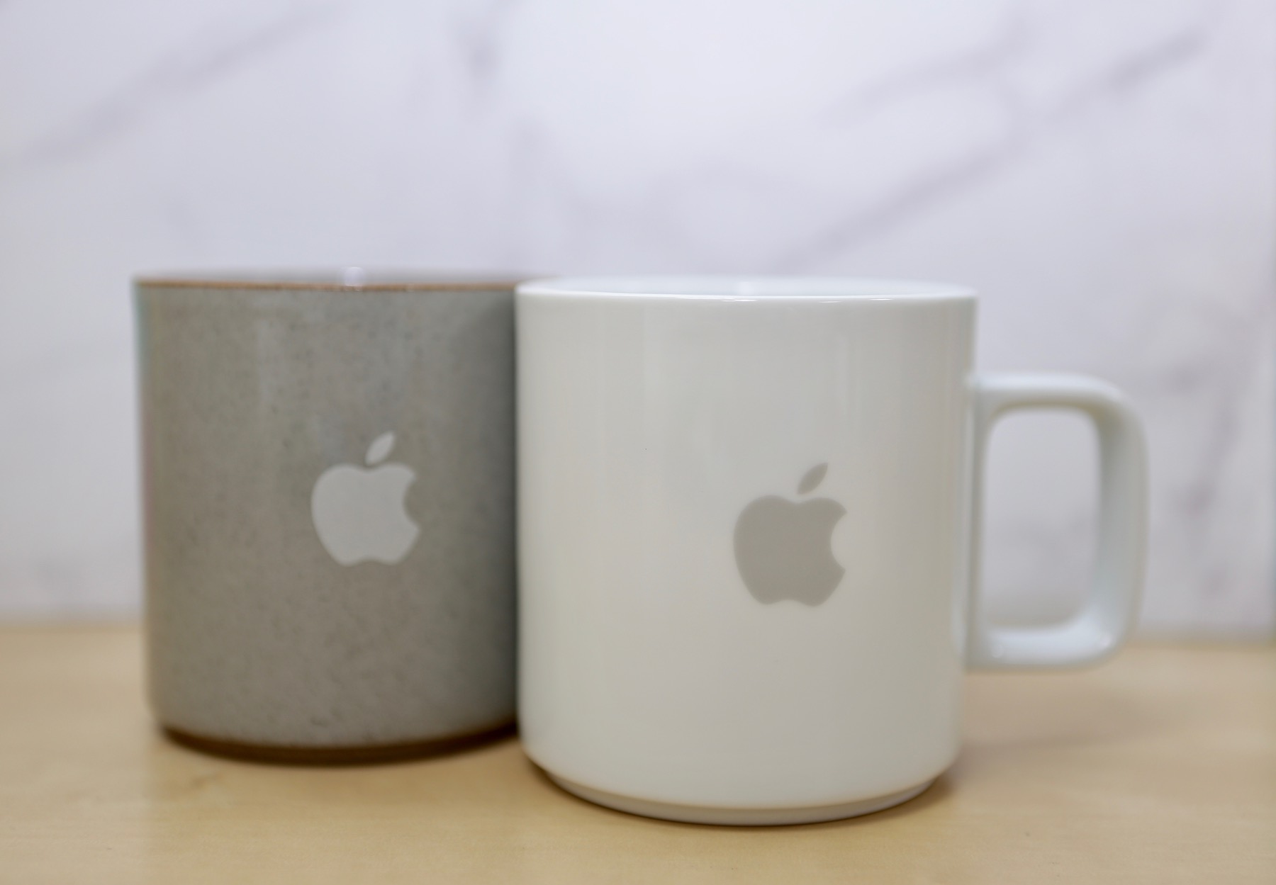 ▼ 登登!這就是這次的兩個馬克杯了。一灰一白,上面都有 Apple 的 Logo。
