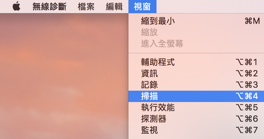 ▼ 我們點選上方選單列的「視窗」選擇「掃描」。
