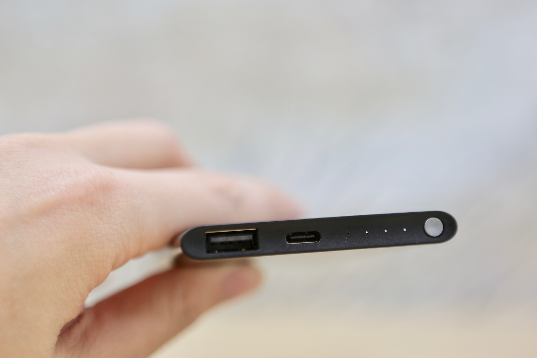 ▼ 所有的功能都在同一側,包含一個 USB-A、USB-C、以及電量指示燈以及按鈕。