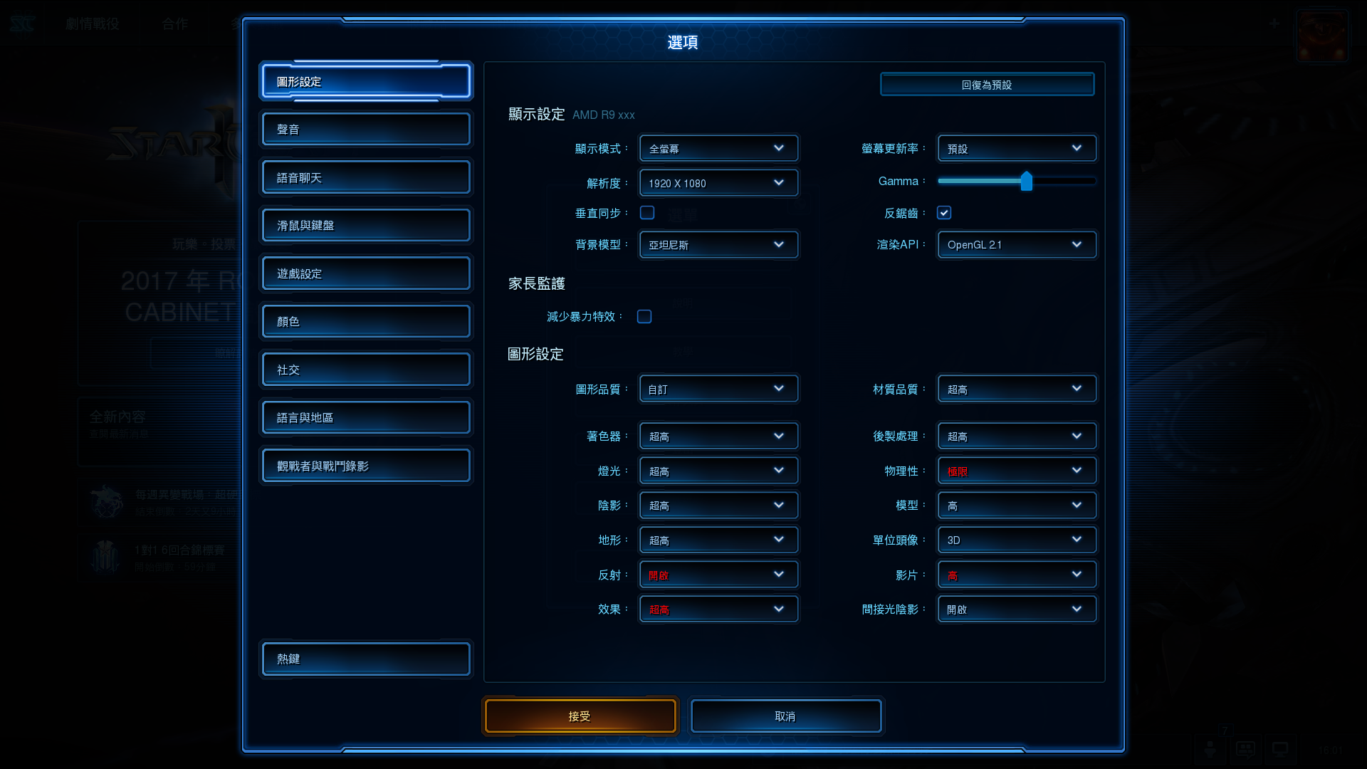 ▼ 光說不練沒有用,馬上打開星海爭霸2,很幸運的這個遊戲有支援。我們先把所有能調整的參數都調到最高。