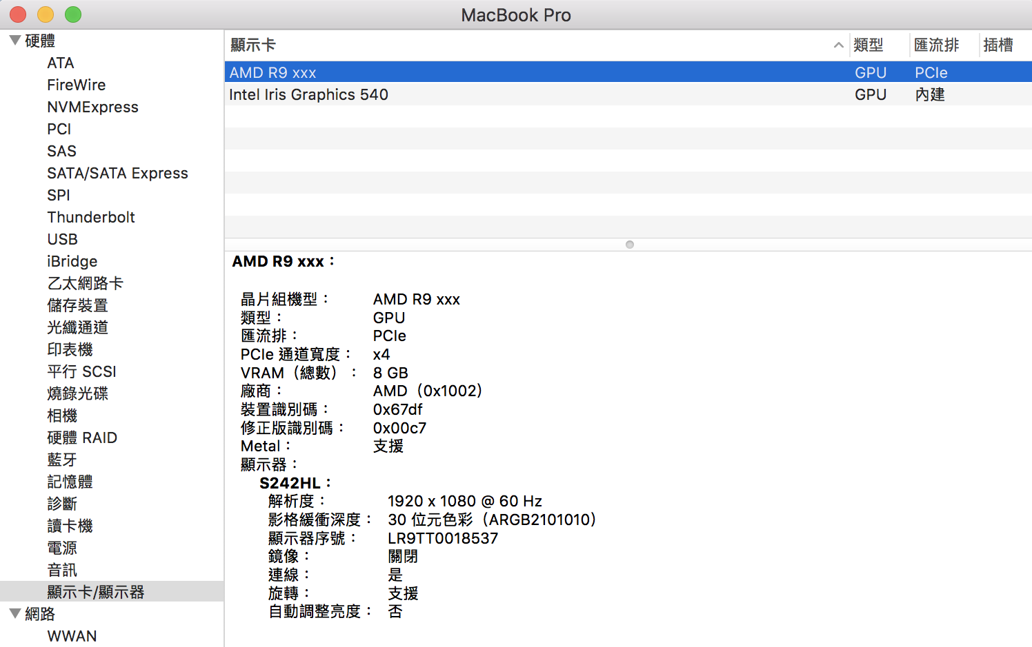 ▼ 只要登出登入就可以,不需要重開機,比起以前用破解的方便多了。這樣系統就有抓到外接顯卡了,不過畢竟還是 Beta 版,型號應該是 RX 480 的卻顯示成 R9 了,不過總之是可以使用了。