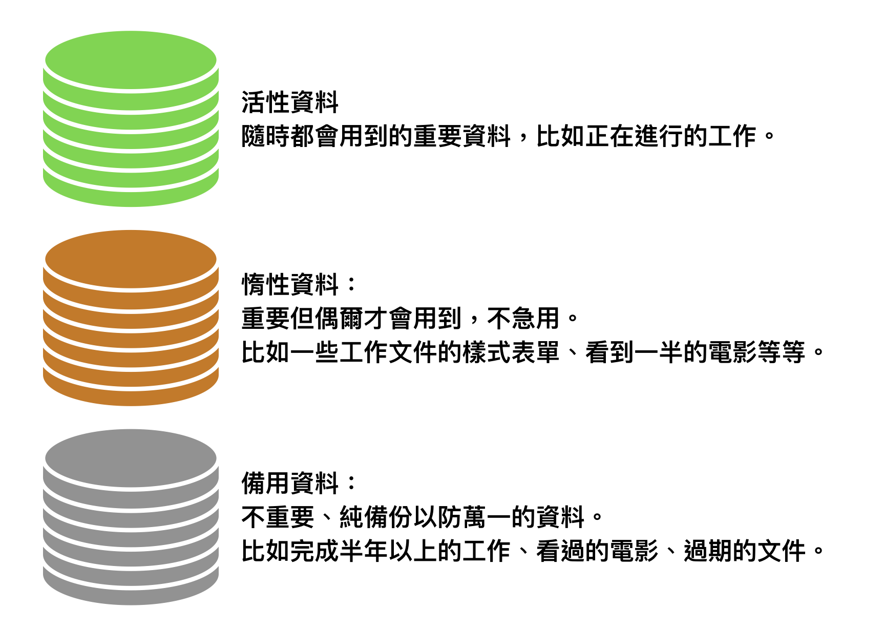 ▼ 還記得我們前面有簡略的把資料分為三類嗎?這時候就不用客氣,下面兩類的資料就是完全可以丟到 NAS 上面的。