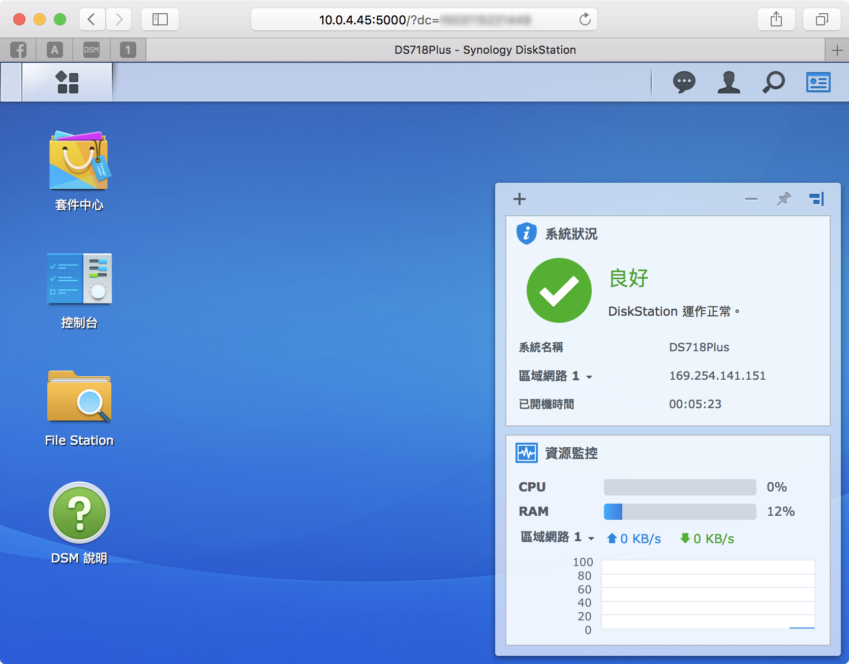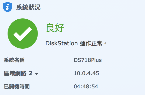 ▼ 如果不確定哪一個是 DS718+ 可以透過 DSM 的系統狀況來看他的 ip 是哪一個。