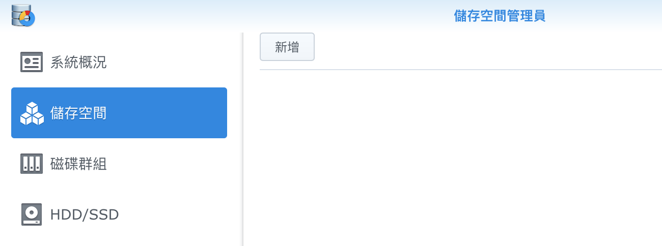 ▼ 來到儲存空間一看,果然是空白的,我們先按下「新增」這個按鈕。