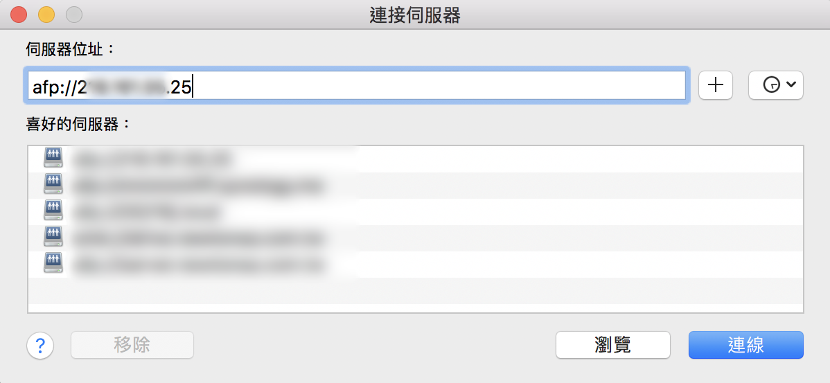 ▼ 這裡輸入 afp://你家的固定ip 即可。也可以按一下右邊的加號,儲存到列表之中,之後就不用每次都要打。