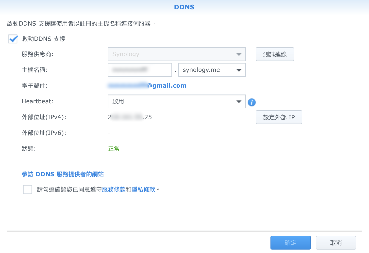 ▼ 如果你家沒有固定 ip,別擔心,只要多一個步驟而已,我們進入 Synology 的系統 DSM。打開控制台,選擇外部存取。這裡可以設定 DDNS。他就是可以幫你申請一個好記的網址,之後我們只要打網址,他就會幫我們去對到 ip 位置。