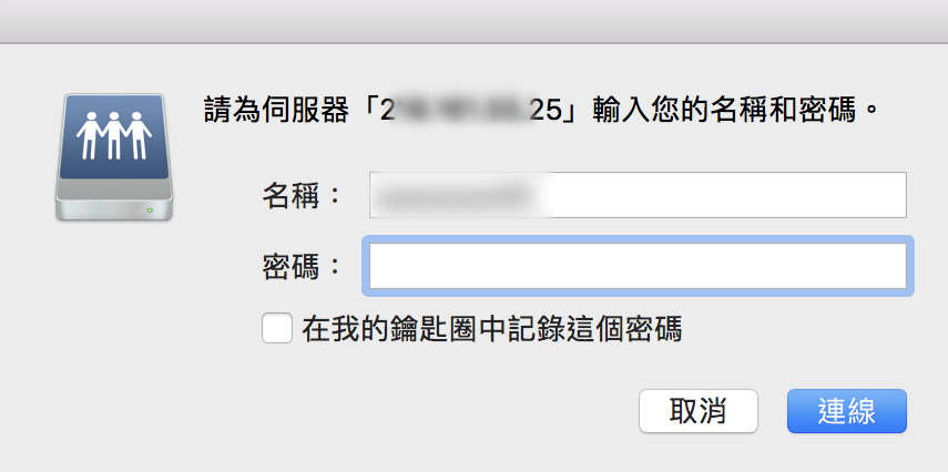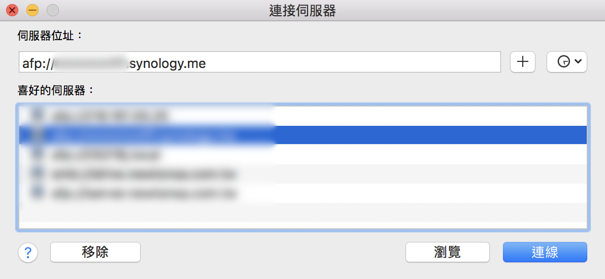 ▼ 輸入完之後,一樣是連接伺服器。不過這次 afp 後面就不是打難記的ip,而是自己設定好的網址囉。