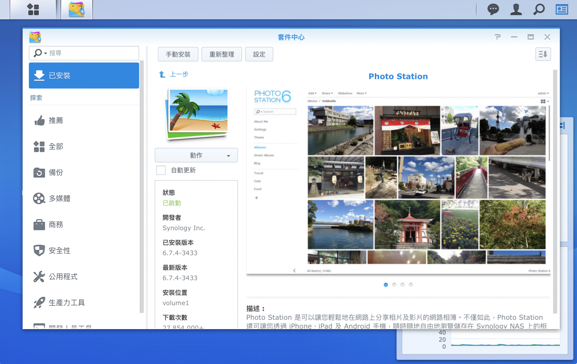 ▼ 這時候我們 NAS 上只需要安裝 Photo Station 這個套件就好。