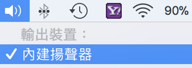 此時就算按住 Option 再按下音量選單,也無法選擇要從喇叭輸出聲音。這樣一來,如果臨時要讓聲音從喇叭輸出,就只能拔耳機這個選項。
