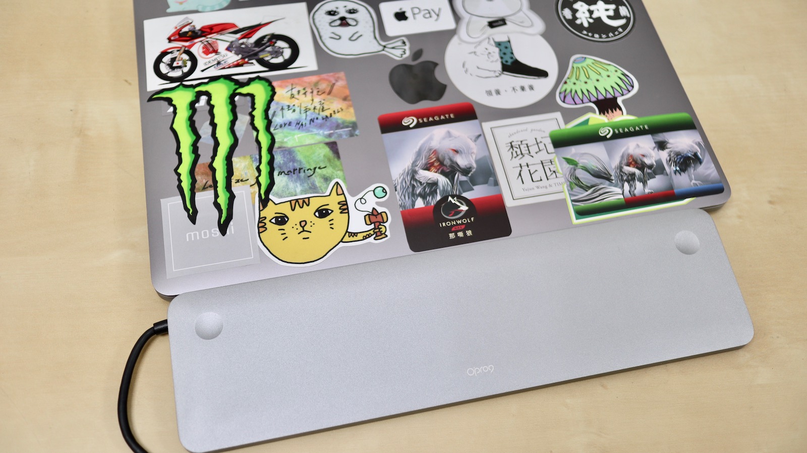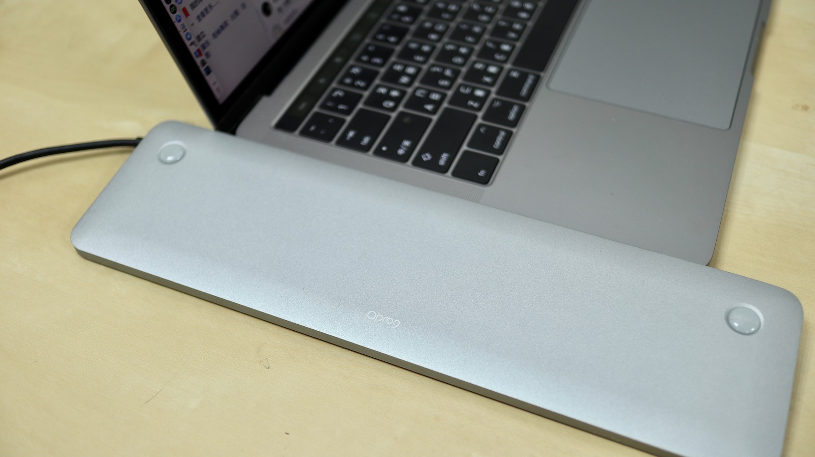 ▼ 最後再來細看一下擺在電腦下面的感覺,質感雖然不能跟我們心中的信仰 MacBook 平起平坐,但放在一起也算是可以接受的。
