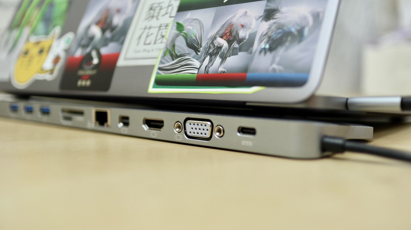 ▼ 他的貼心之處來了,他做成有點傾斜的角度就是為了讓你可以墊高電腦,加強對流散熱。所以雖然他宣傳是寫轉接 11 功能,但這可以算是隱藏的第 12 功能。