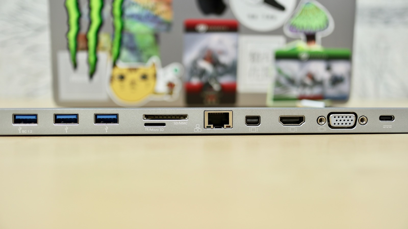 ▼ 翻到背面的時候,實際看到本體還是會不免讚嘆一下,實在是太齊全啦,應有盡有。USB-A、兩種讀卡機、1G網路孔,三個視訊介面,還有電源輸入,實在太猛。