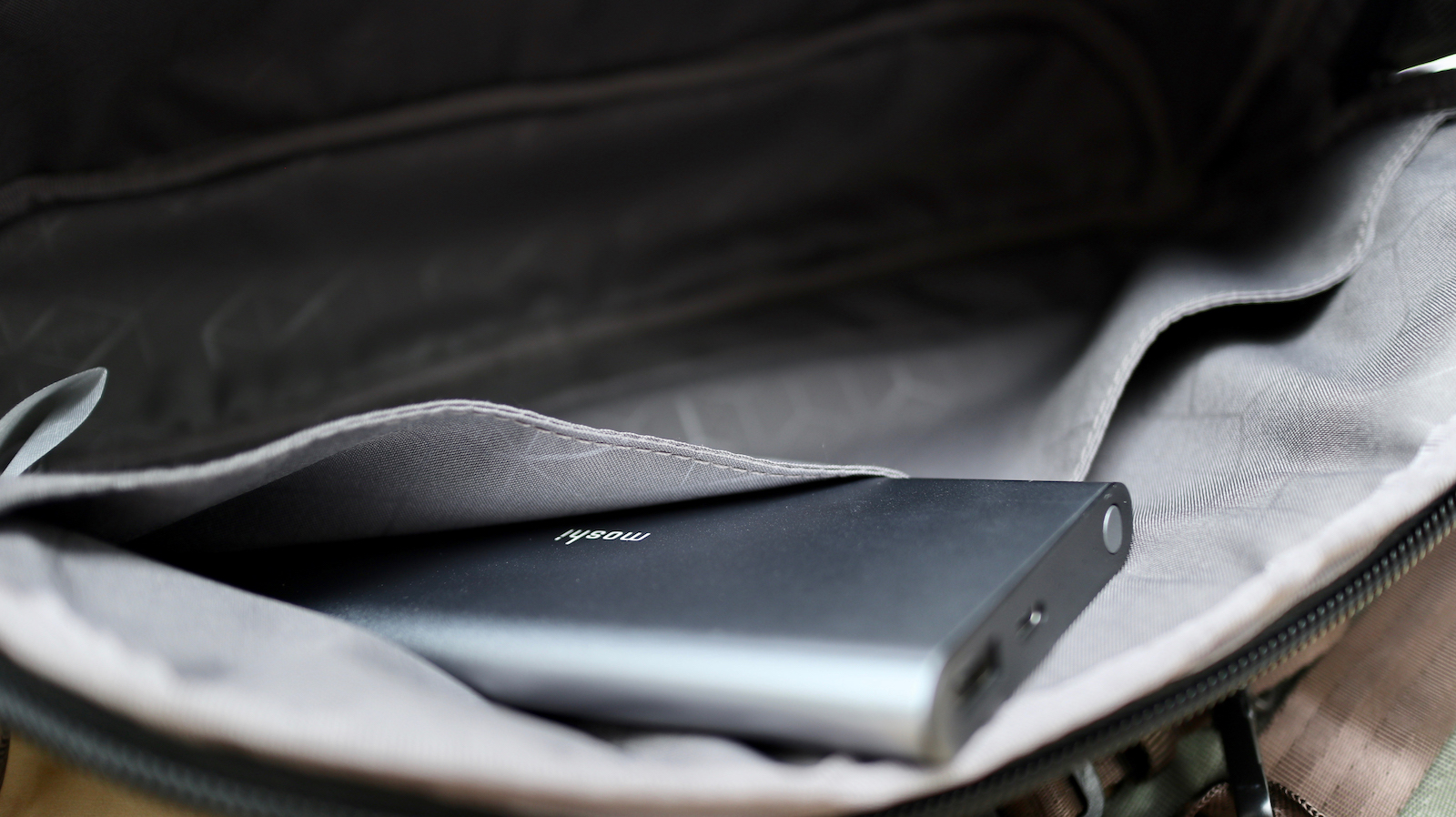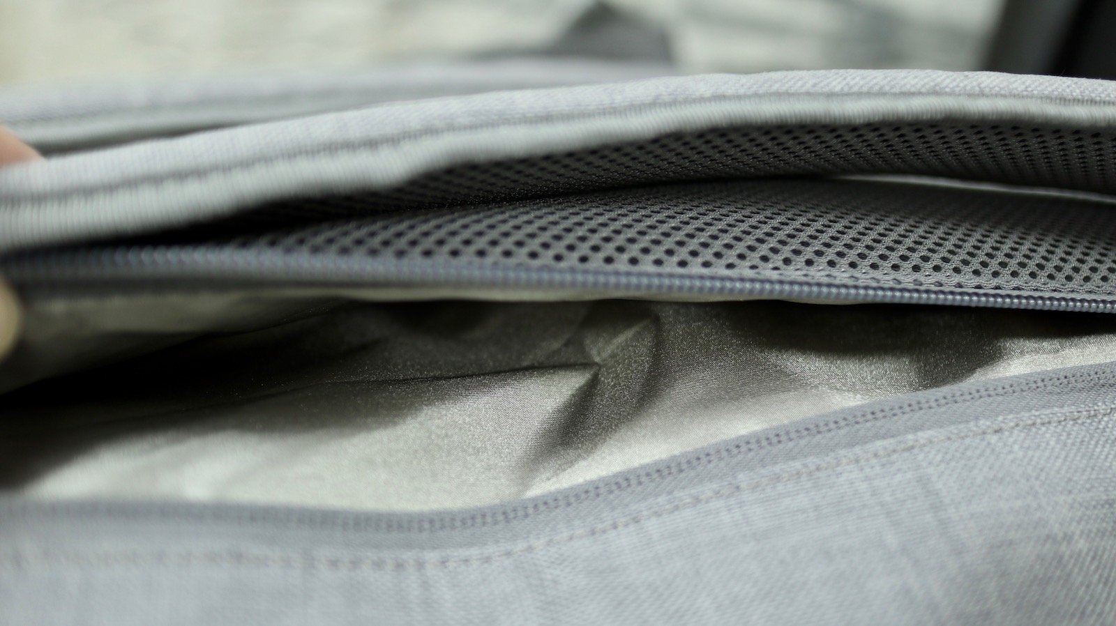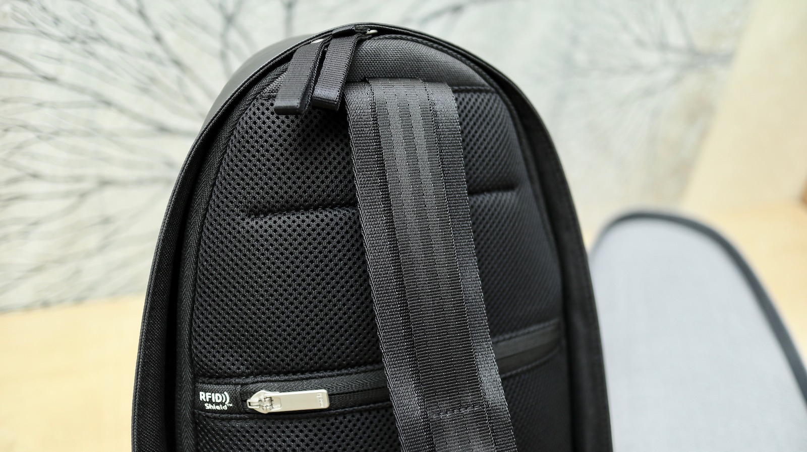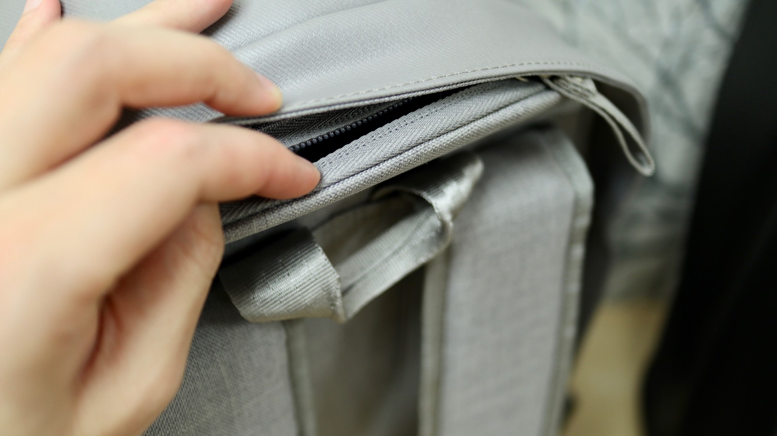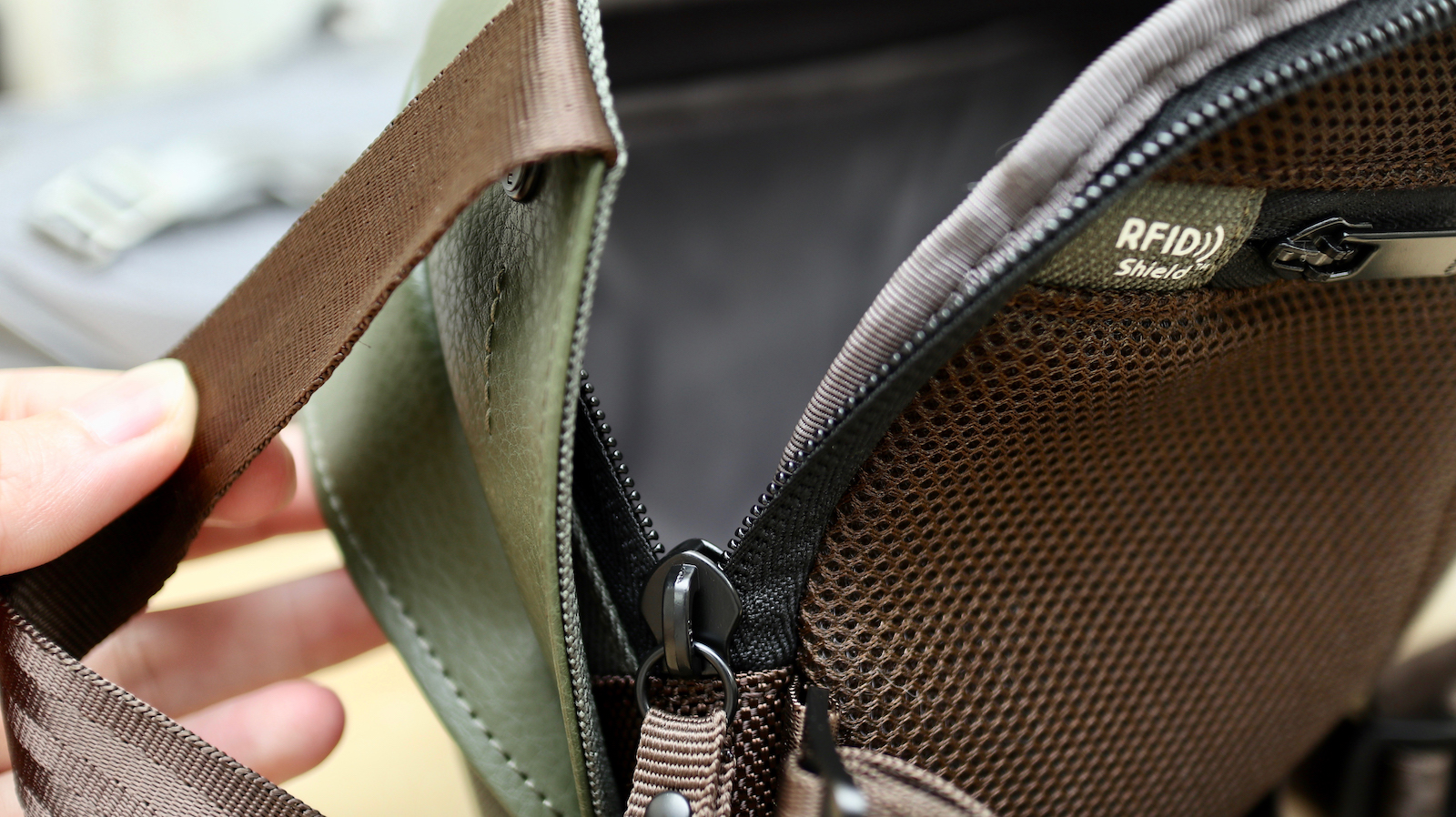 ▼ 實體上的偷東西避免了,數位的偷竊也需要防護。所以在背面與背帶中間,還有一層放錢包用的拉鍊夾層。這裡的角度可以讓需要拿錢包的時候可以直接手伸到後面拿,而不用整個包包脫下來。
