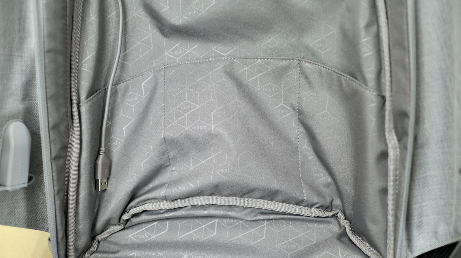 ▼ 雖然這麼說,不過我的朋友倒是覺得像一隻魷魚,尤其是側邊往後折的布片,簡直像是魷魚的鰭。不過無論他像是什麼,Moshi 一如往常的擅長把他們的 Logo 放在低調的地方,但又完全不失優雅。